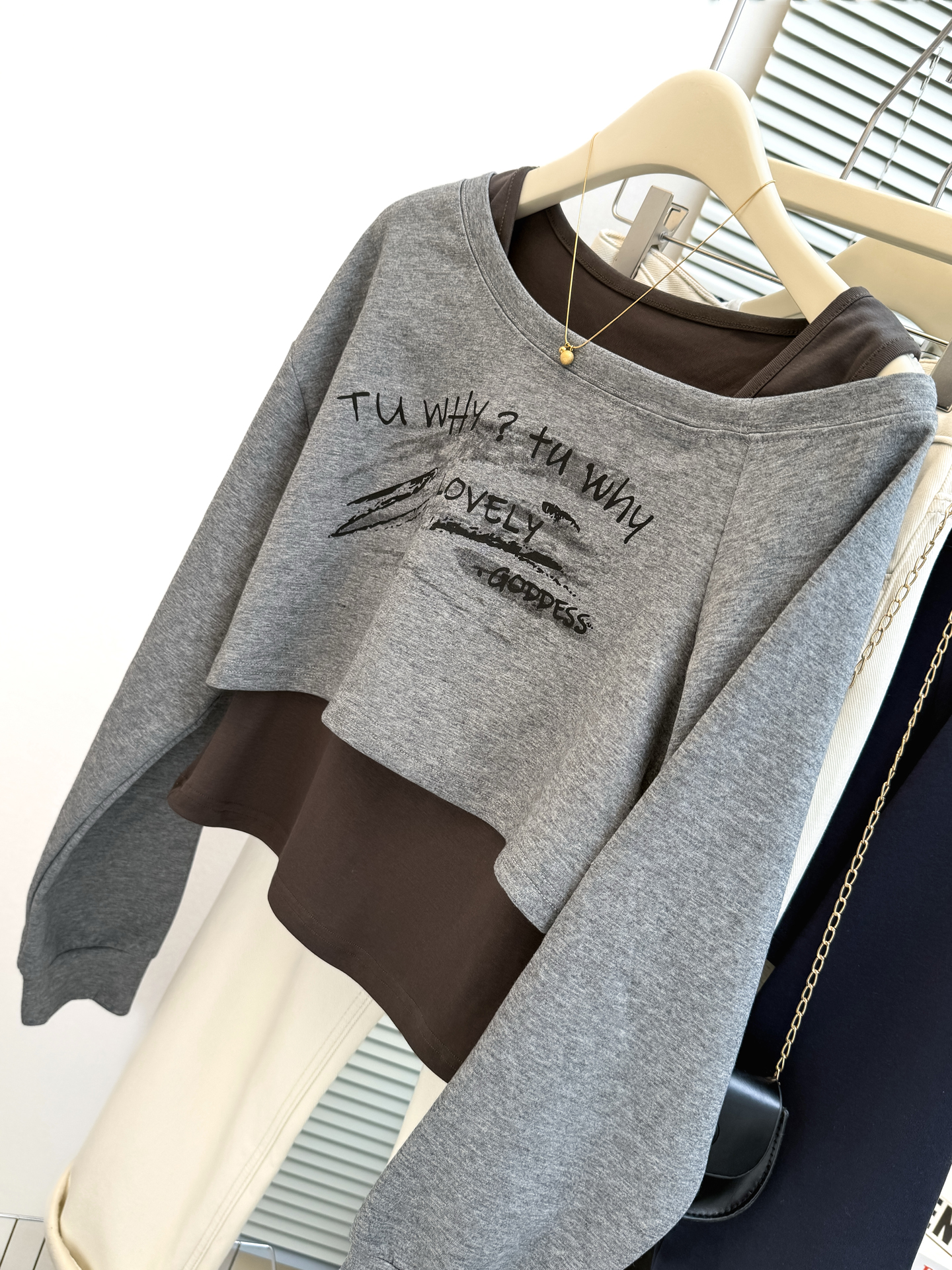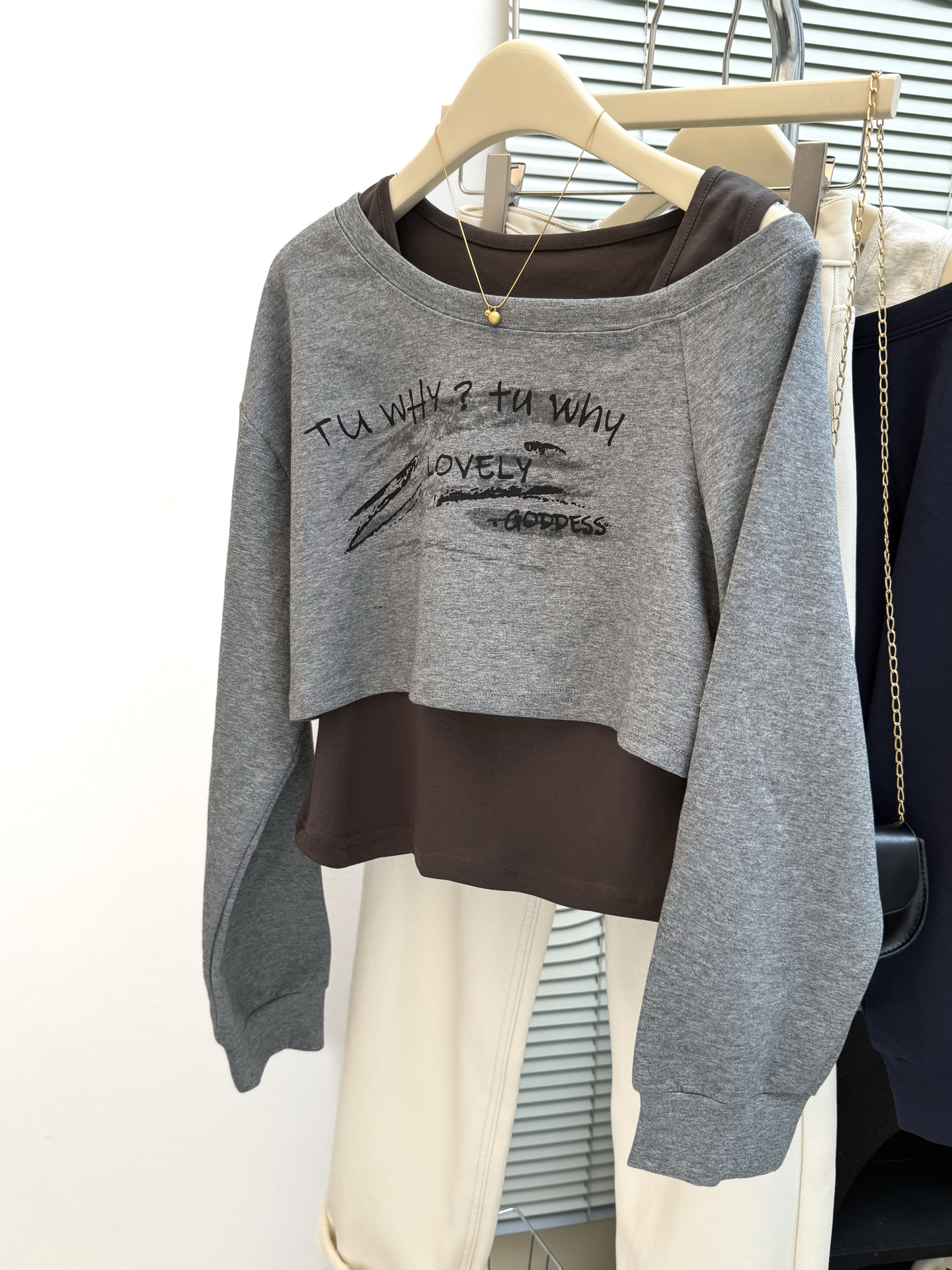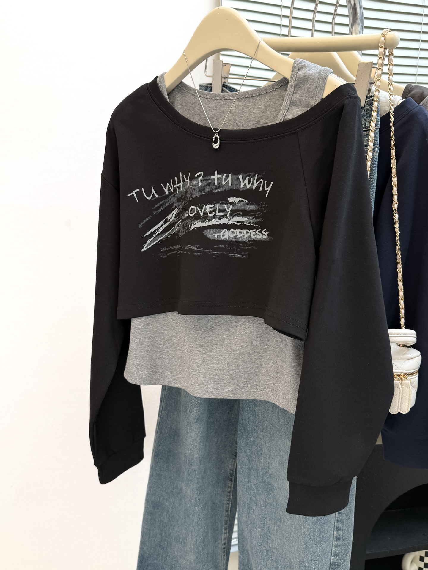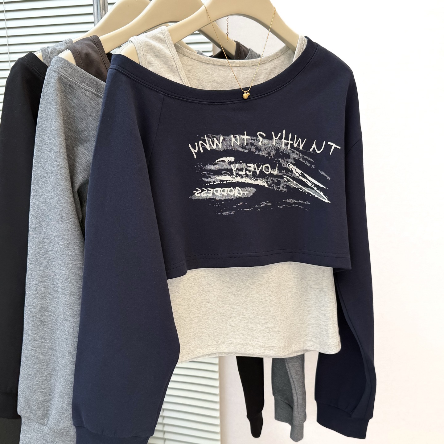 FA49761# 韩系字母印花一字肩长袖卫衣+修身背心套装女秋季新款两件套 服裝批發女裝批發服飾貨源