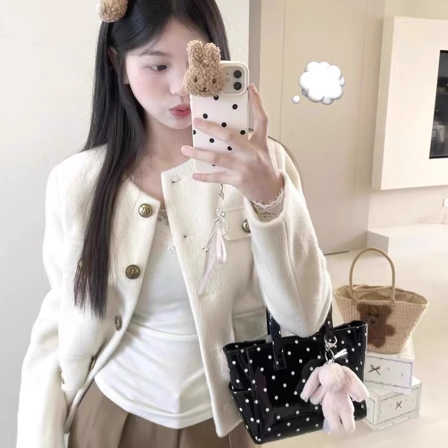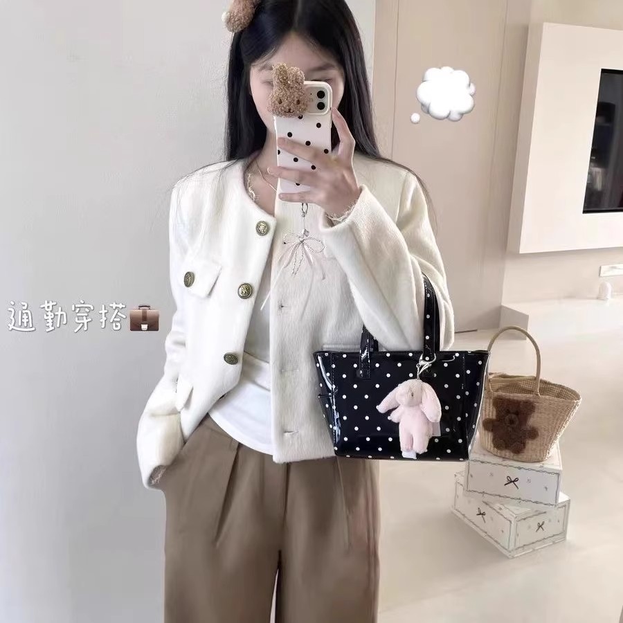 FA49763# 富家千金白色小香风毛呢外套秋冬款小个子高级感宽松百搭上衣 服裝批發女裝批發服飾貨源