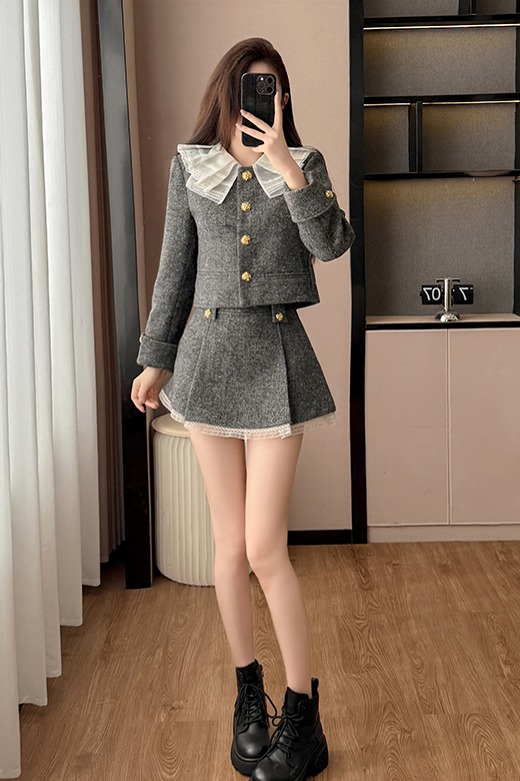 FA49891# 韩系高级感穿搭套装裙秋季新款小香风miu系开衫外套百褶半裙 服裝批發女裝批發服飾貨源