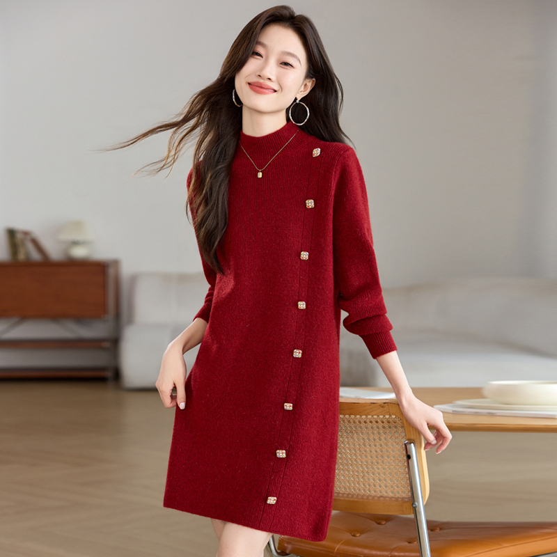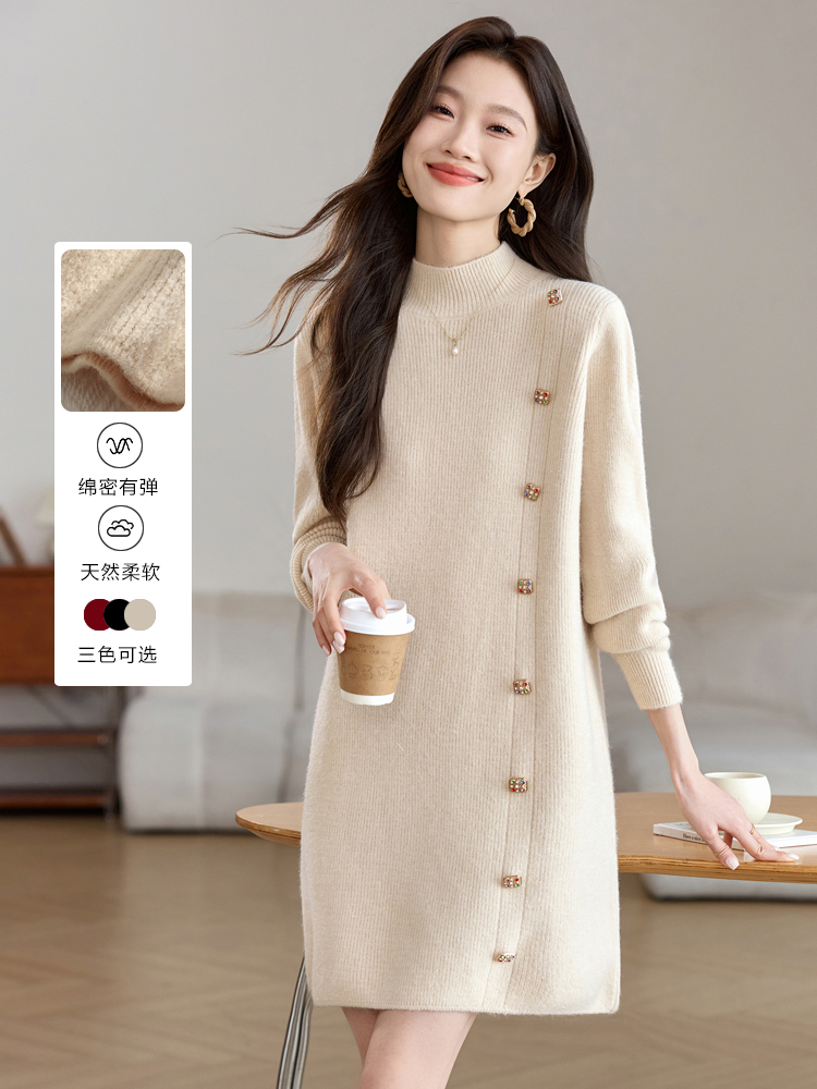 FA50084# 毛衣女秋冬新款中长款打底衫内搭遮屁股针织连衣裙 服裝批發女裝批發服飾貨源