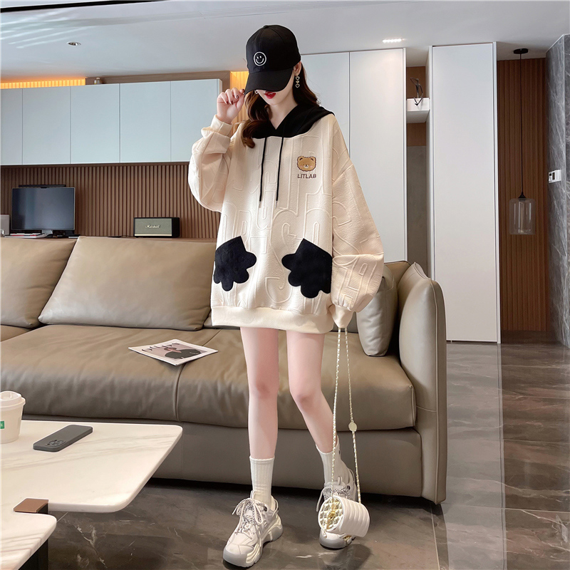FA50129# 提花复合贝贝绒加绒加厚卫衣女开衫连帽外套大码女装上衣 服裝批發女裝批發服飾貨源