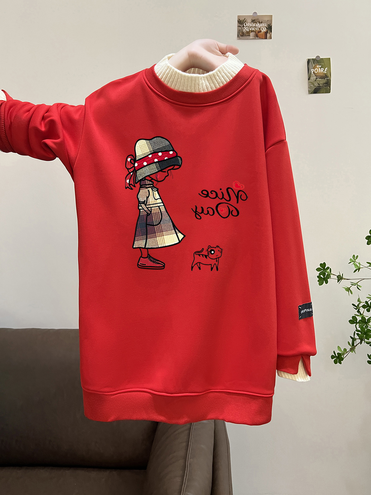 FA50132# 华棉复银狐绒300斤假两件卫衣女冬季加绒宽松中长外套 服裝批發女裝批發服飾貨源