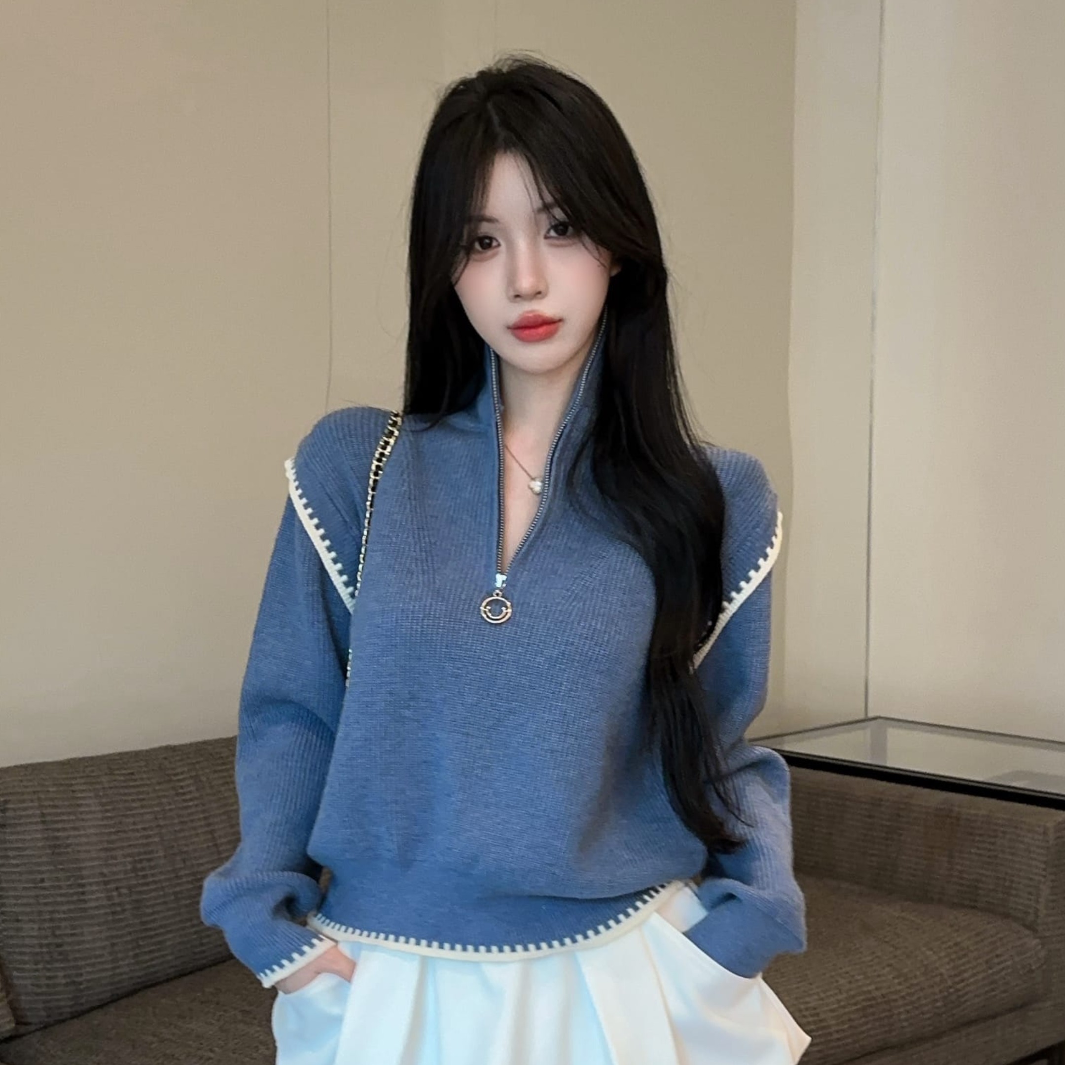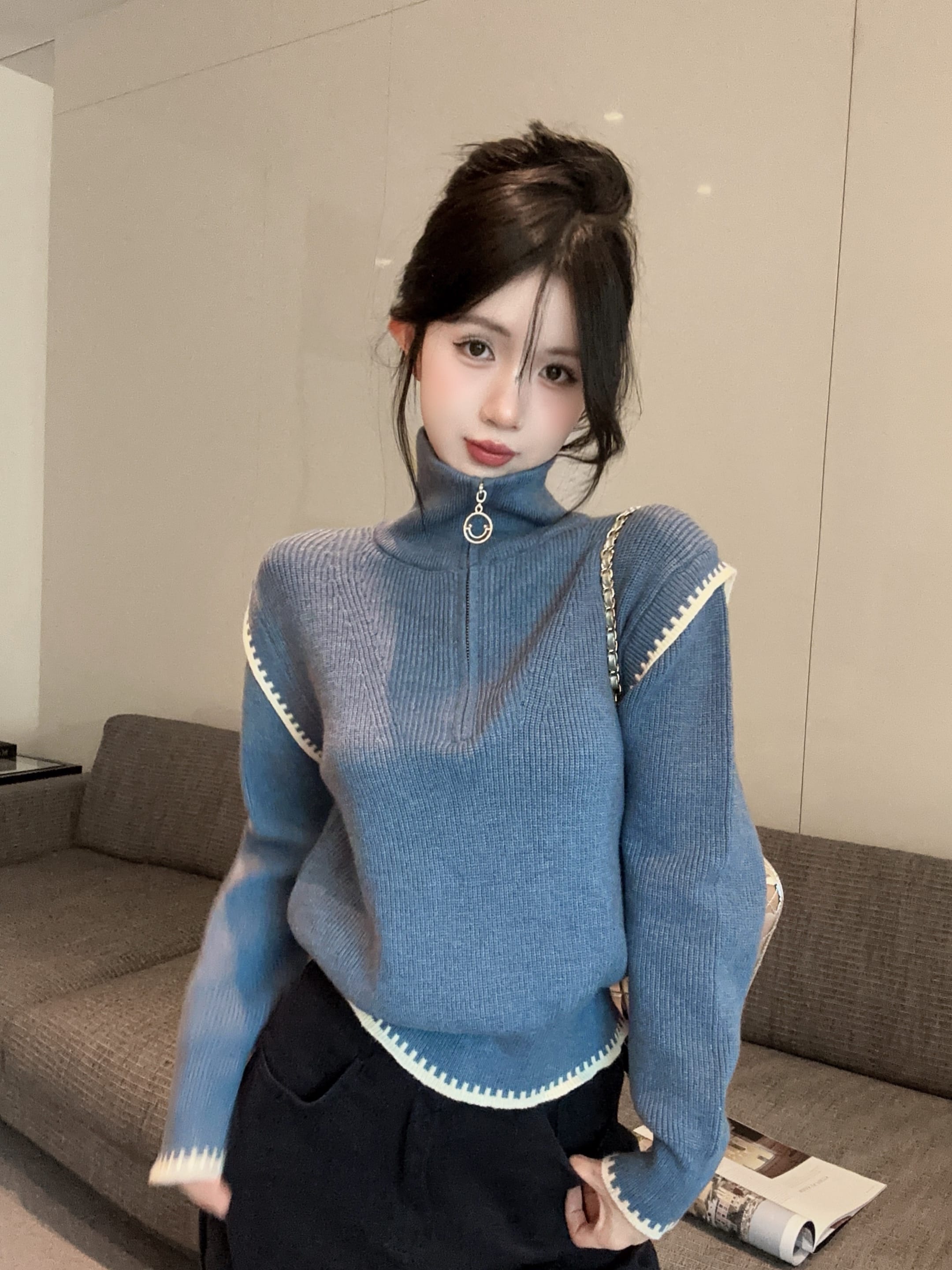 FA50148# 高级感半拉链高领立领毛衣外穿慵懒加厚内搭针织打底上衣 服裝批發女裝批發服飾貨源