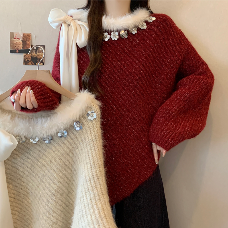 Home > 毛衣、针织衫 > FA50166# 圣诞节撞色立体花朵红色毛衣女秋冬大码胖妹妹高级感洋气宽松上衣 服裝批發女裝批發服飾貨源