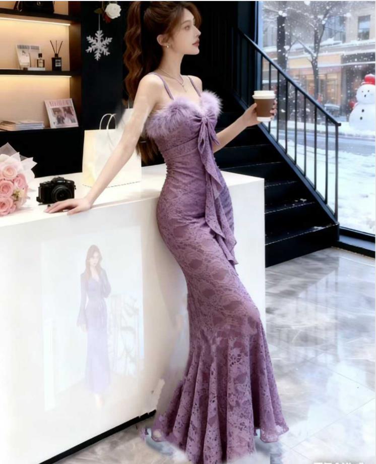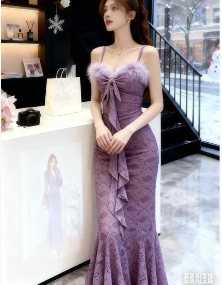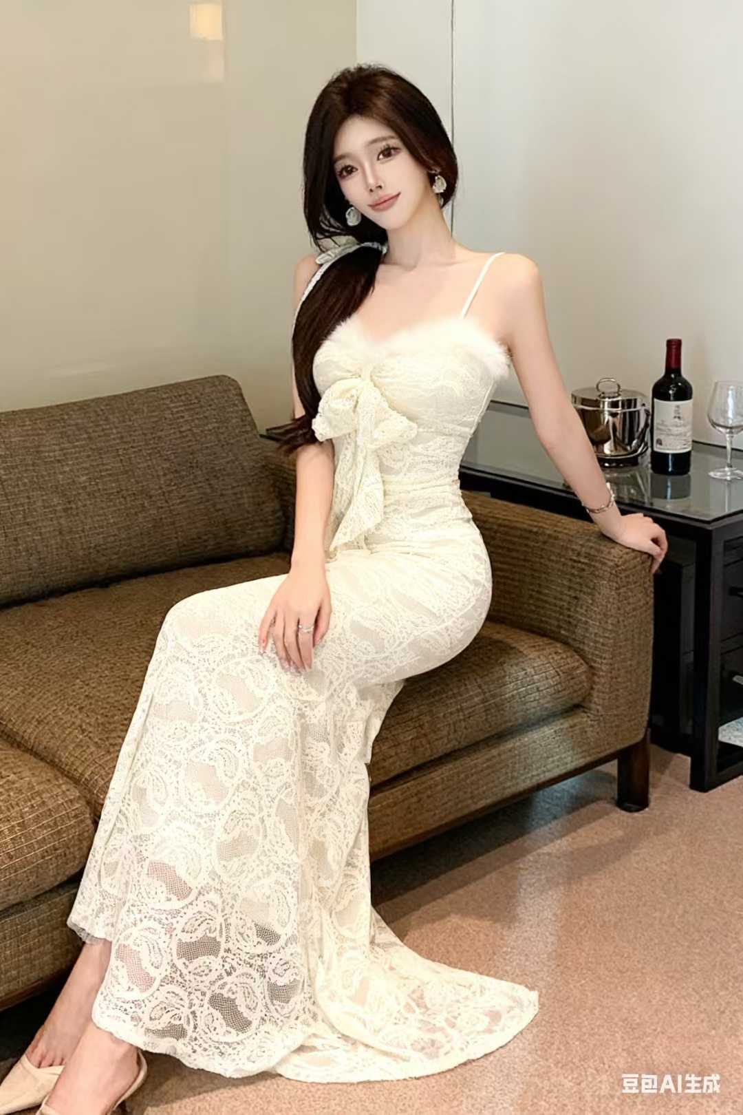 FA50219# 法式名媛复古蕾丝拼接连衣裙夏季修身显瘦鱼尾裙吊带 服裝批發女裝批發服飾貨源