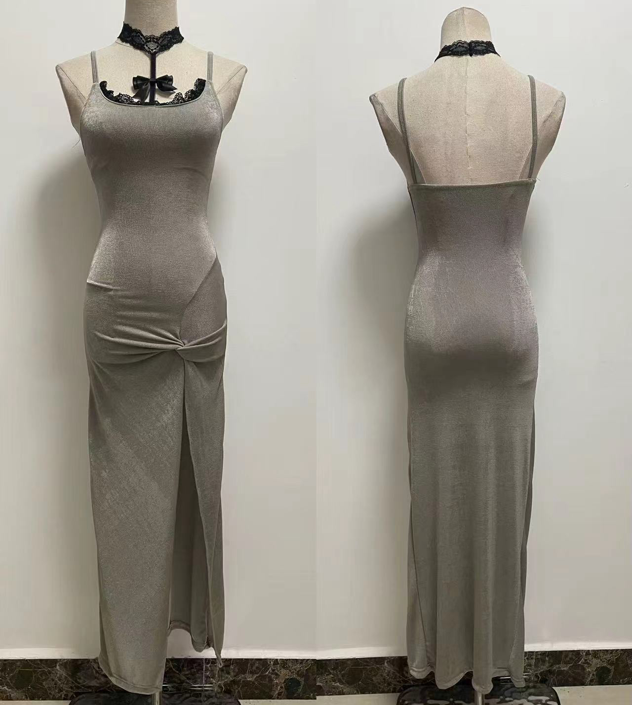 FA50309# 挂脖时尚蕾丝吊带开叉性感礼服长裙连衣裙紧身包臀连衣裙 服裝批發女裝批發服飾貨源