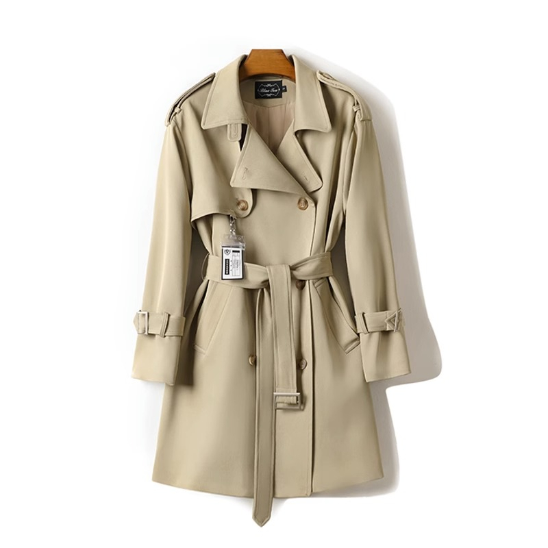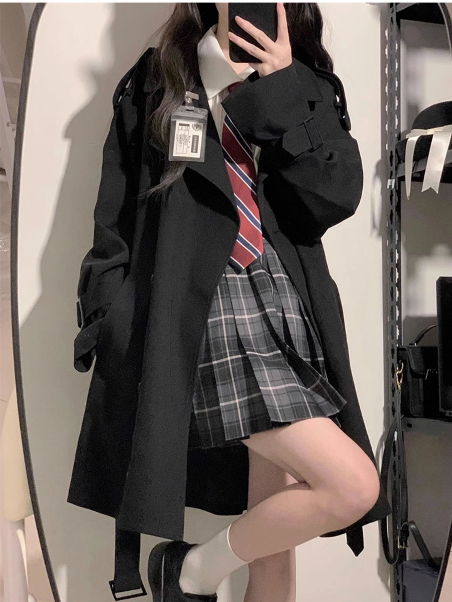 FA50474# 小个子风衣女春秋新款韩系高级感黑色英伦风中长短款大衣外套 服裝批發女裝批發服飾貨源
