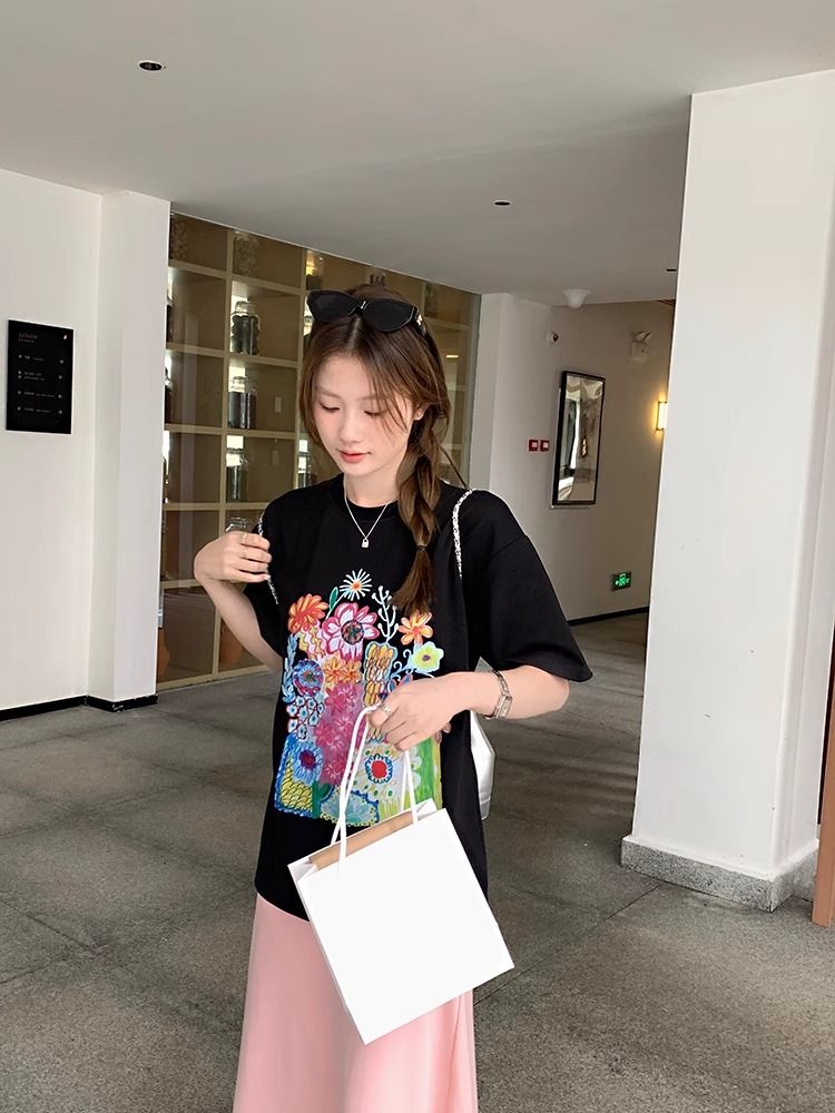 CX13611# 最便宜服饰批发 纯棉短袖t恤女宽松韩版ins潮春夏季新款中长款半袖上衣ins潮