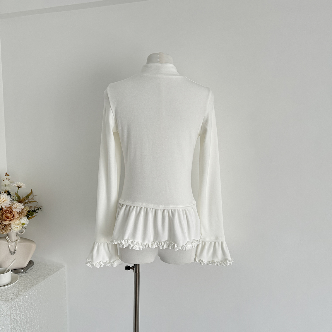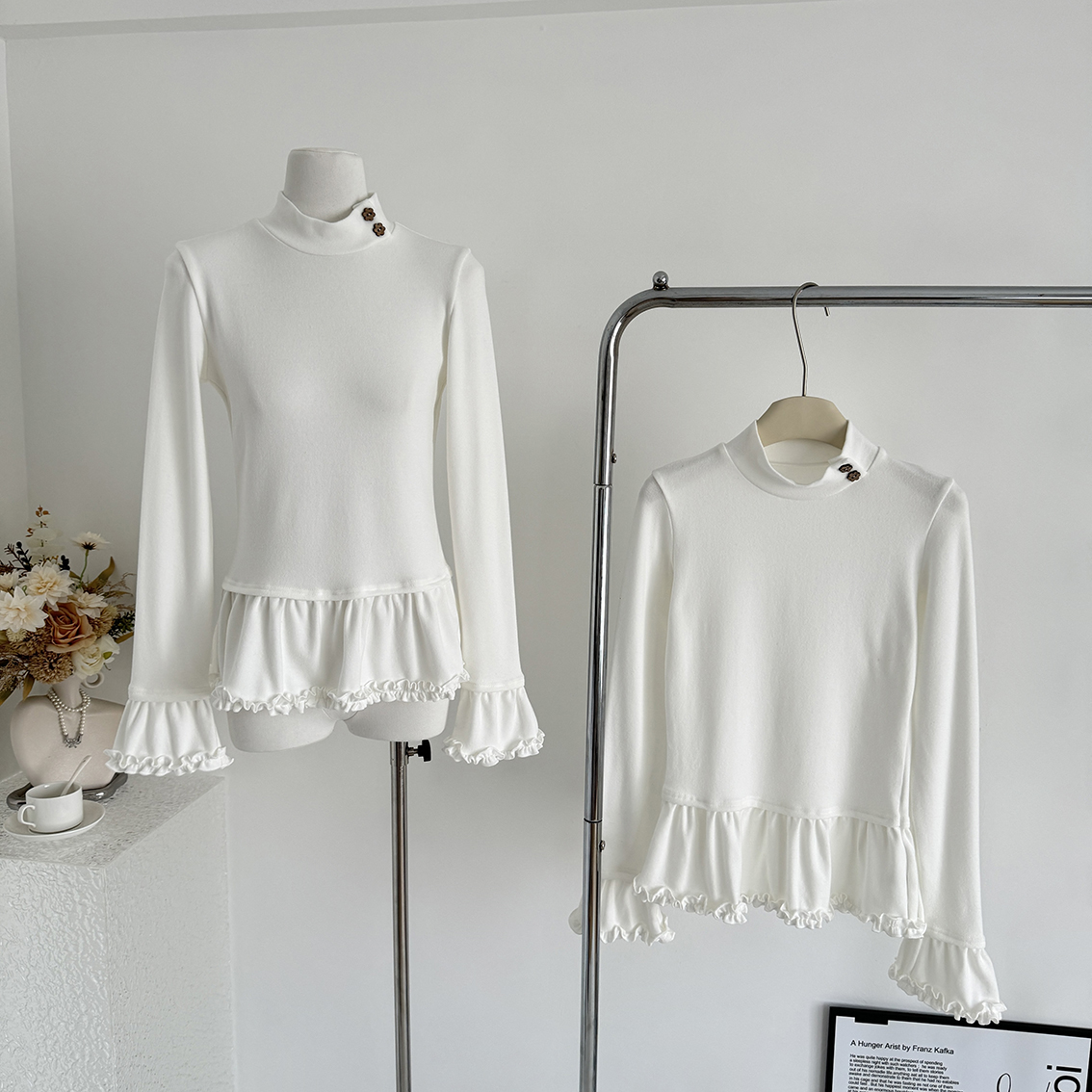 FA50557# 设计感磨毛长袖木耳边上衣女冬不规则翻领修身显瘦内搭打底衫 服裝批發女裝批發服飾貨源