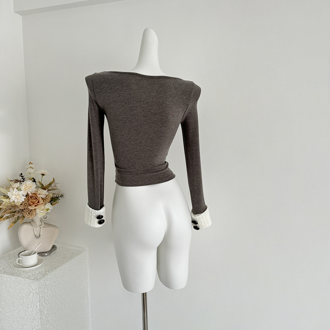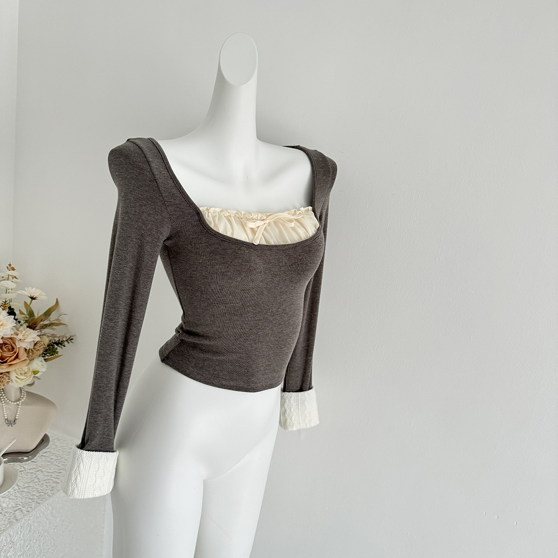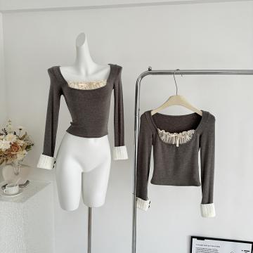 FA50559# 小姐姐圣诞来咯好穿B入毛毛袖弹力显瘦针织打底长袖T恤女 服裝批發女裝批發服飾貨源