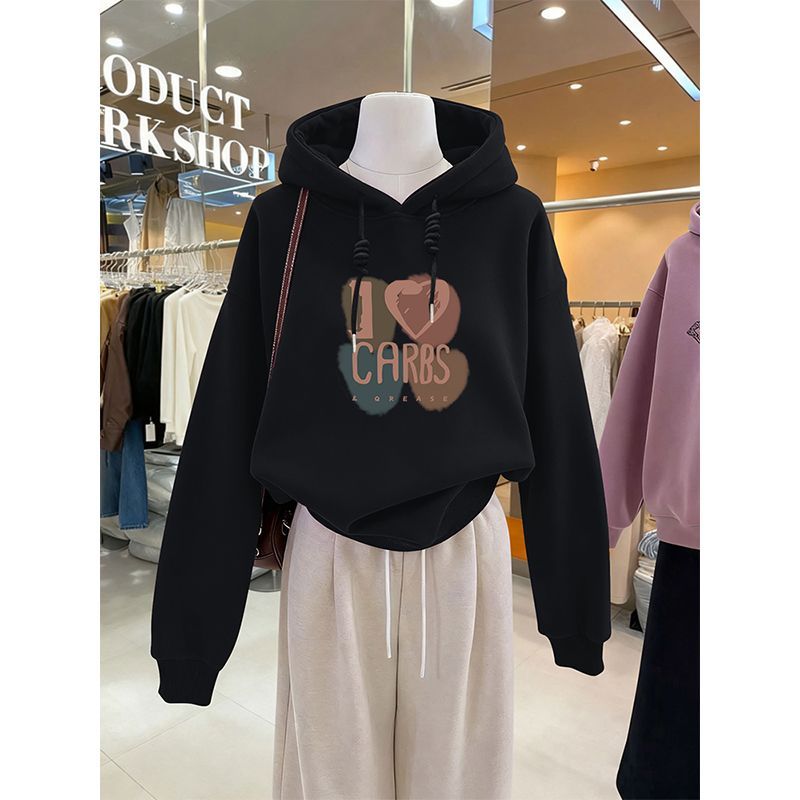 FA50641# 加绒连帽卫衣女秋冬新款山东即墨爱心字母印花长袖上衣服 服裝批發女裝批發服飾貨源