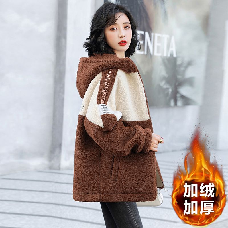 FA50909# 颗粒绒复奥粒绒冬季加绒加厚羊羔绒连帽外套卫衣 服裝批發女裝批發服飾貨源