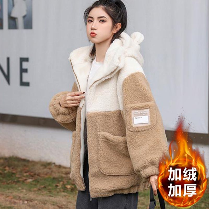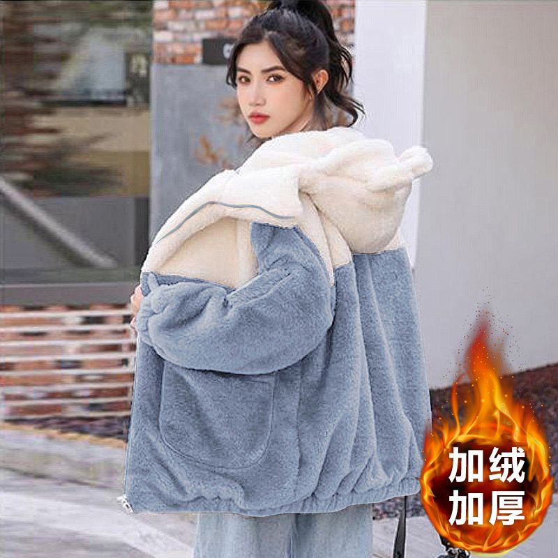 FA50910# 颗粒绒复奥粒绒冬季加绒加厚羊羔绒连帽外套卫衣 服裝批發女裝批發服飾貨源