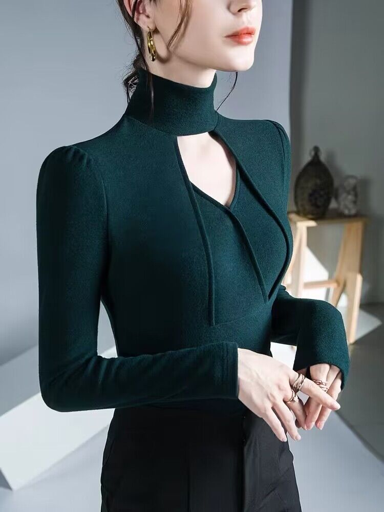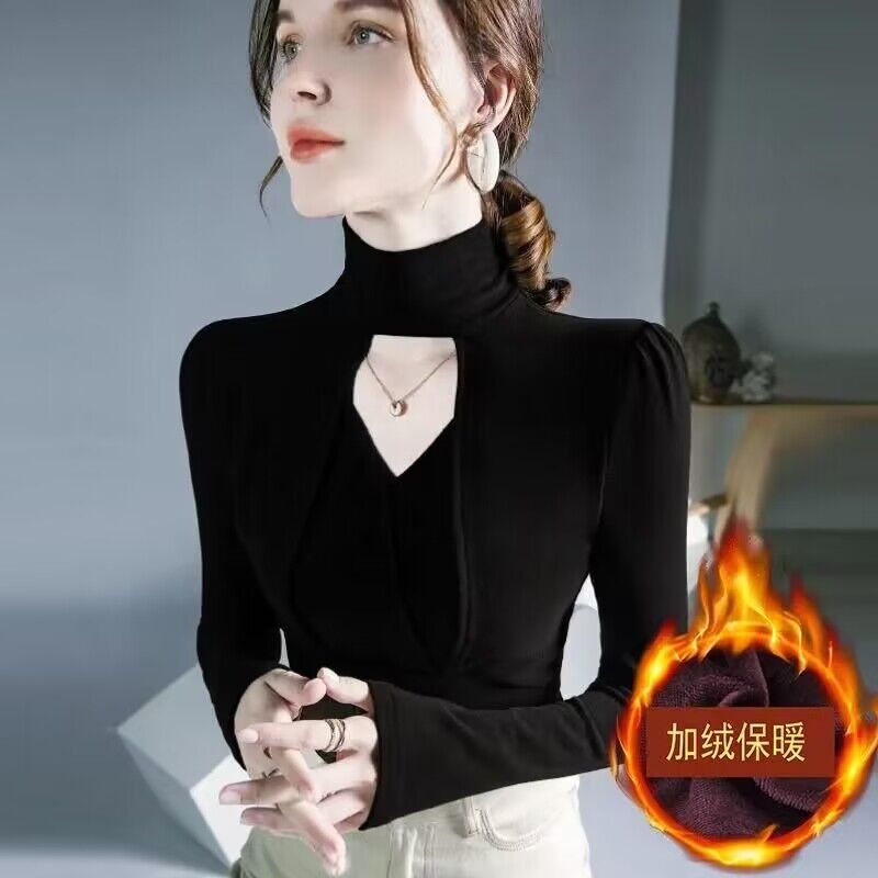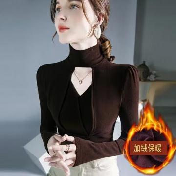 FA50949# 设计感别致镂空上衣春秋新款时尚小高领打底衫洋气内搭长袖 服裝批發女裝批發服飾貨源