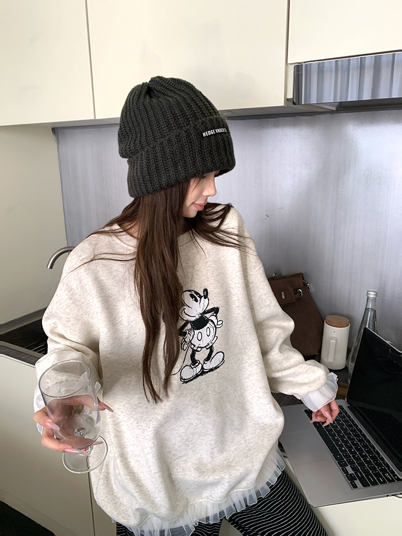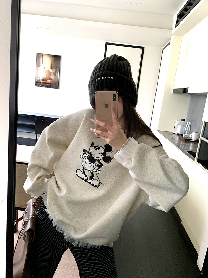 FA51229# 纯棉华棉复合真超加绒卫衣女秋冬潮新款蕾丝宽松保暖上衣 服裝批發女裝批發服飾貨源