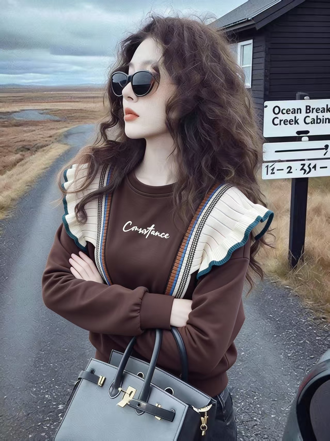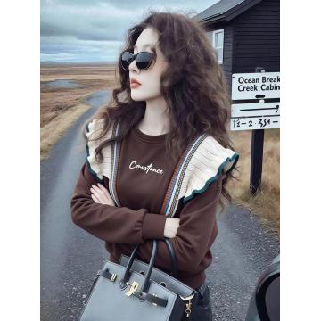 FA51328# 秋冬季新款时尚甜美荷叶边拼接字母印花卫衣宽松气质百搭上衣 服裝批發女裝批發服飾貨源
