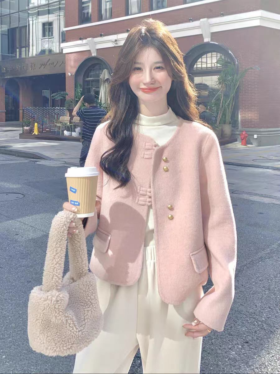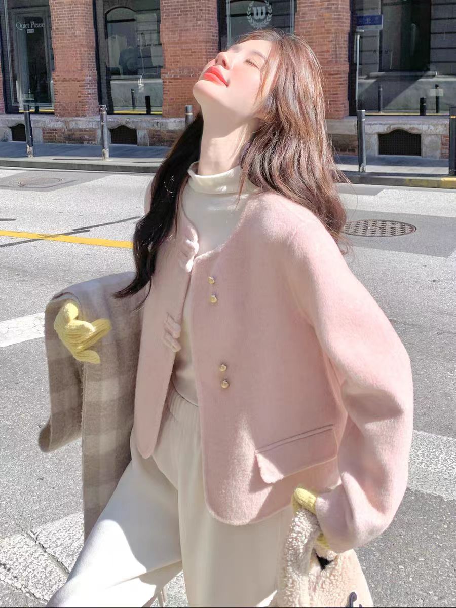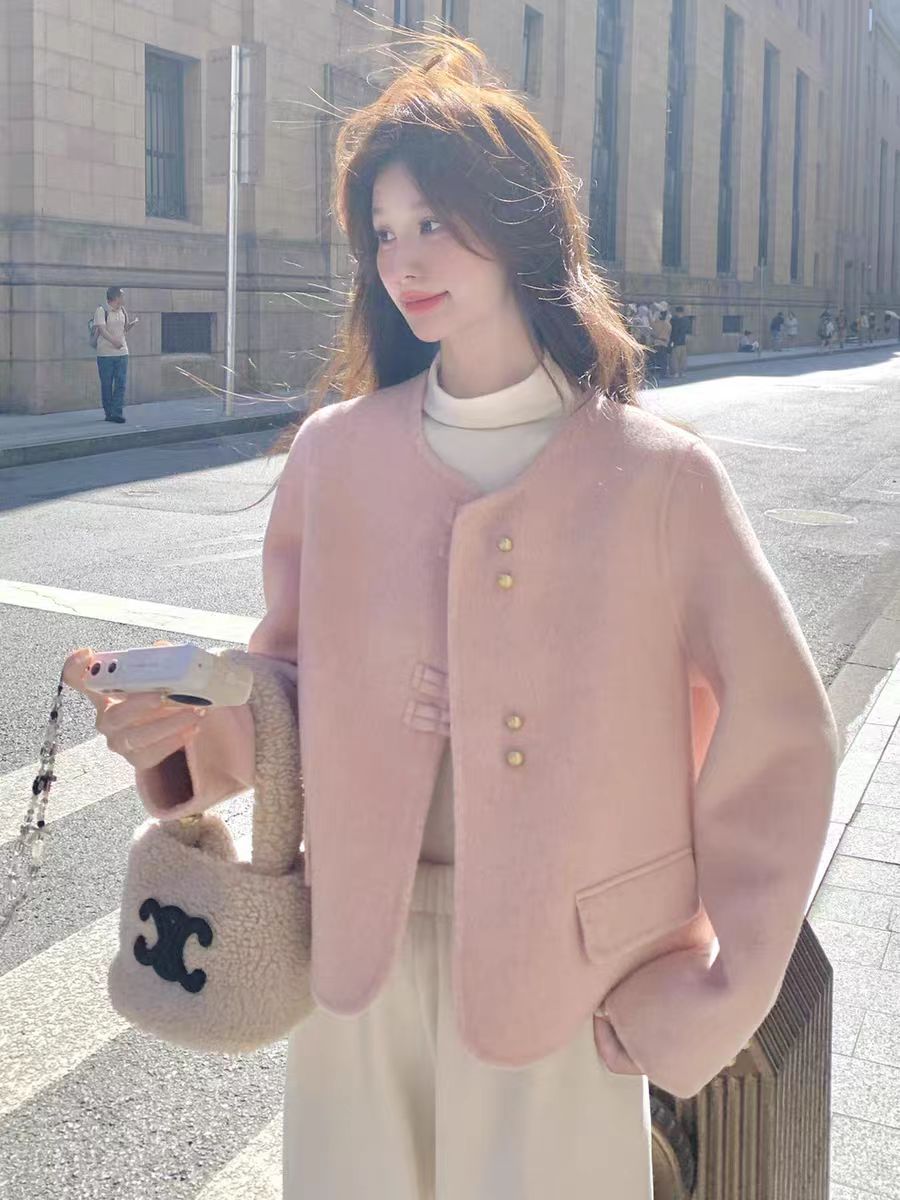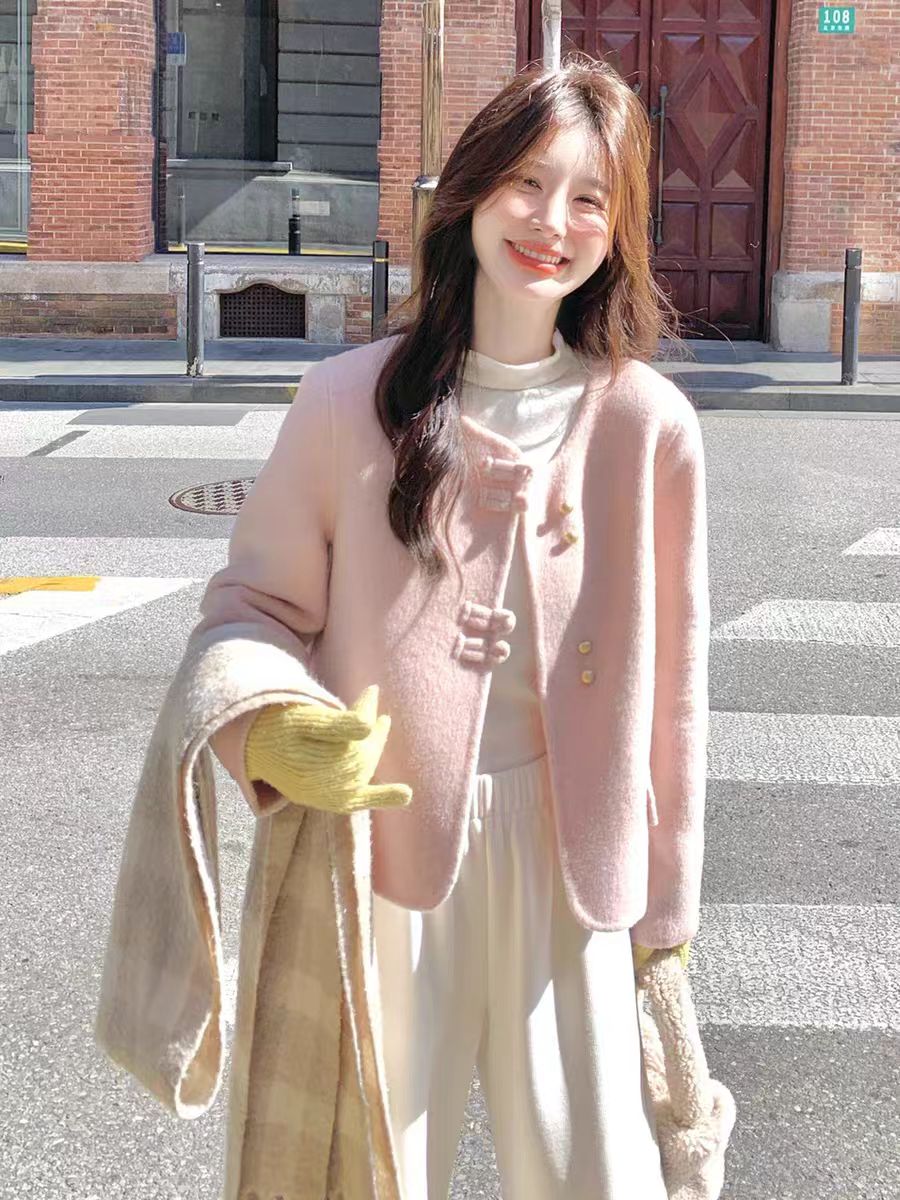 FA51336# 粉色小香风甜美双面呢羊毛外套女秋冬季新款时尚气质显瘦上衣 服裝批發女裝批發服飾貨源