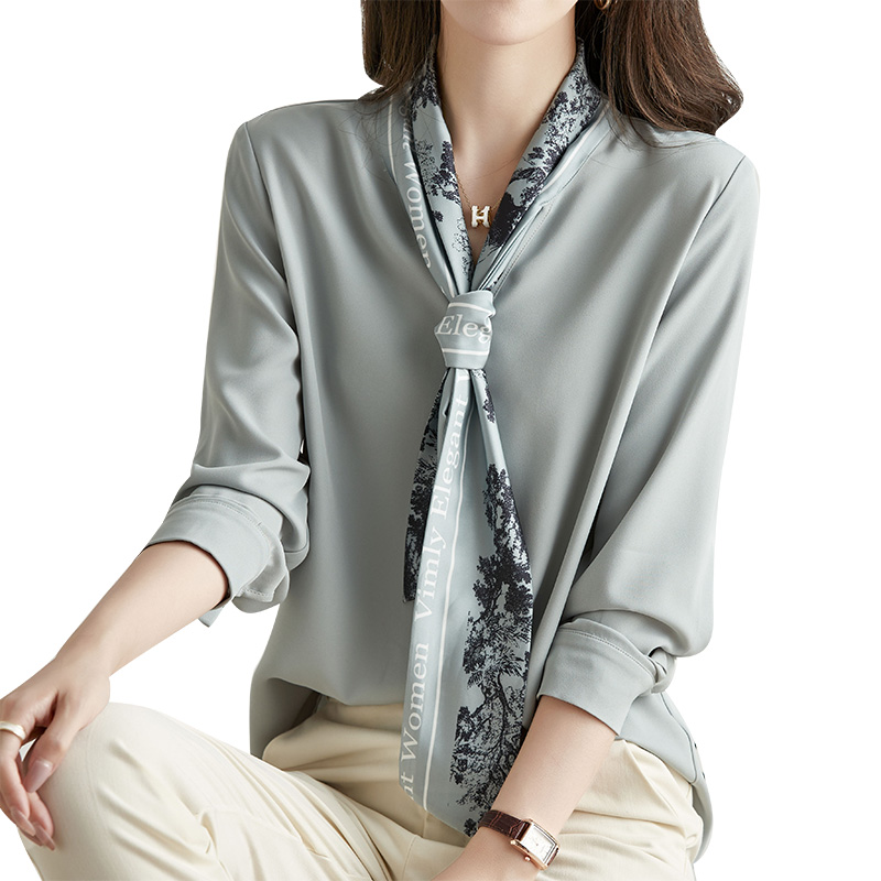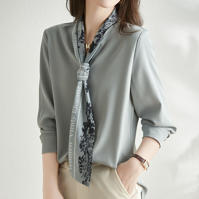 Home > 长袖雪纺衫、衬衫、上衣 > FA51342# 春秋法式飘带领结醋酸仿真丝衬衫女设计感小众别致上衣蓝色衬衣 服裝批發女裝批發服飾貨源