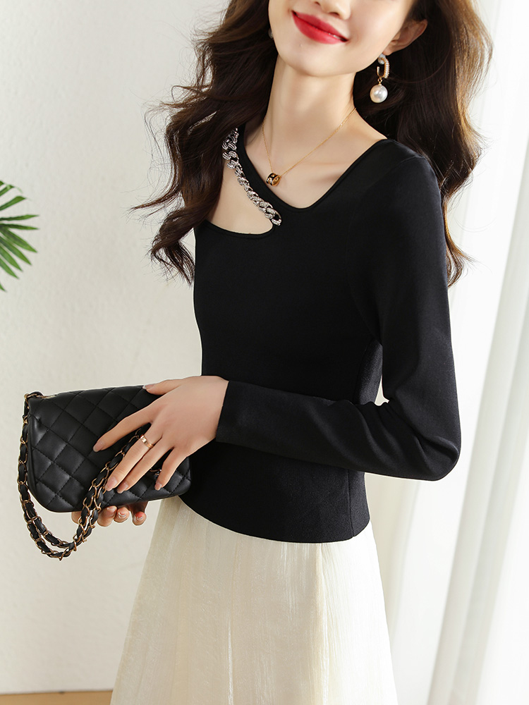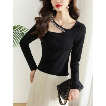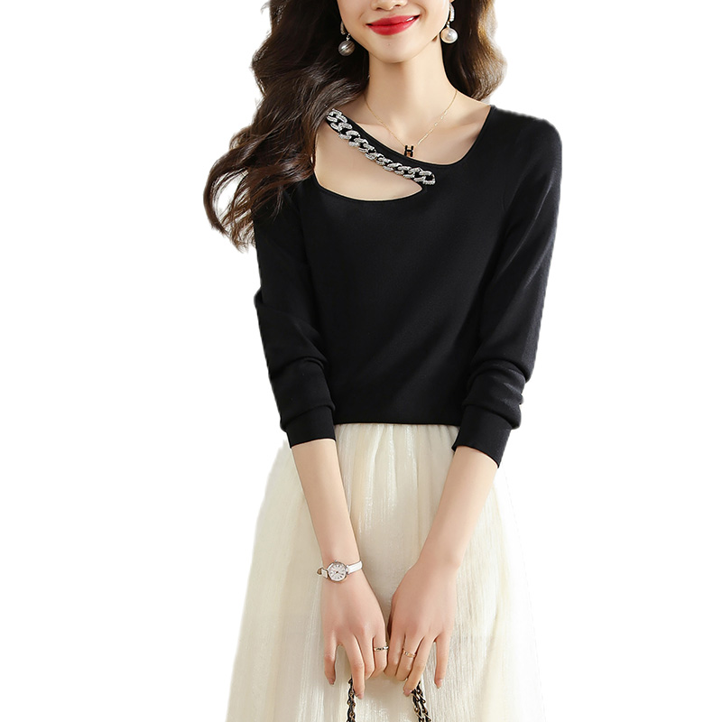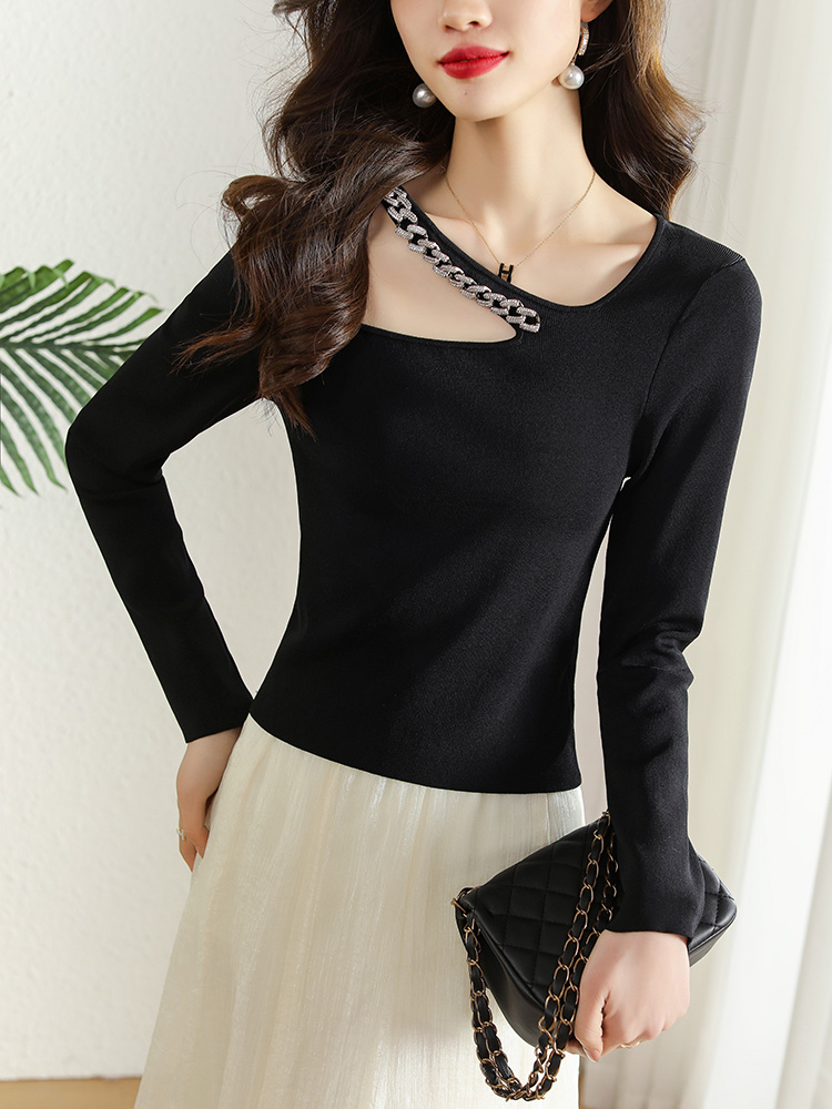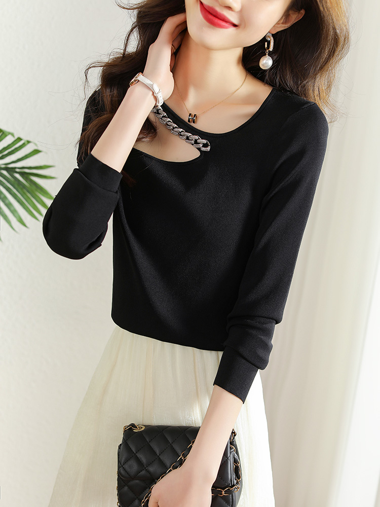 FA51344# 春季新款链条镂空挂脖长袖T恤女设计感小众短款内搭上衣 服裝批發女裝批發服飾貨源