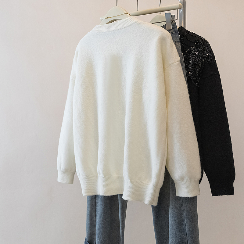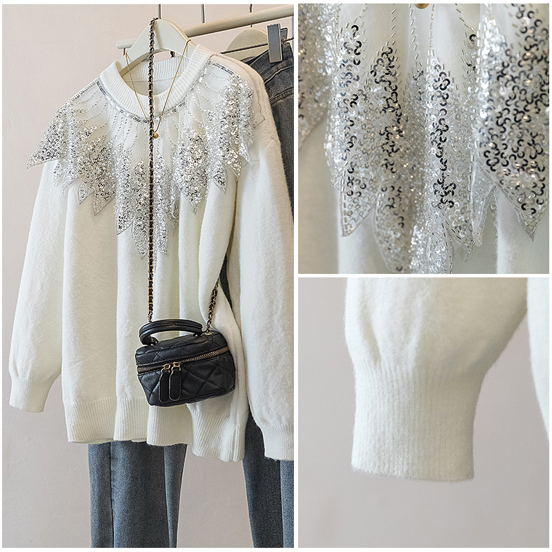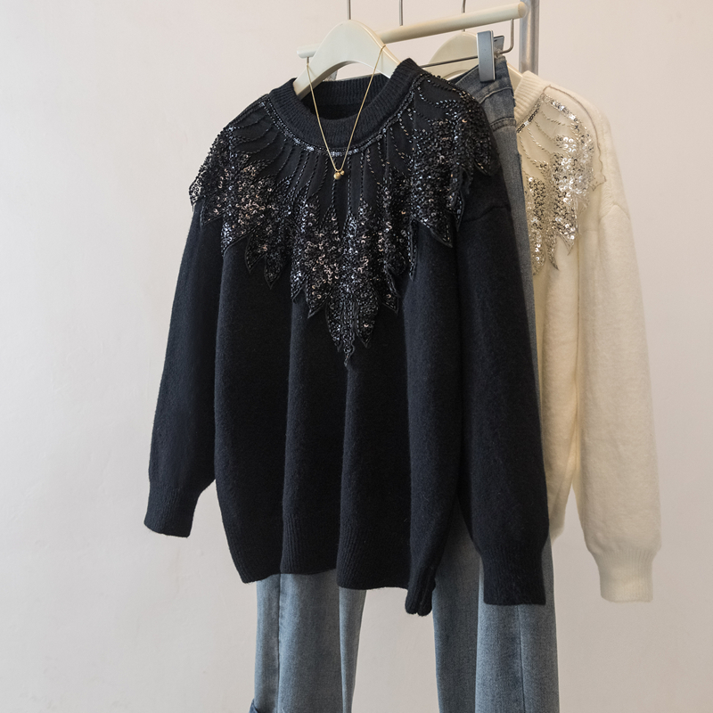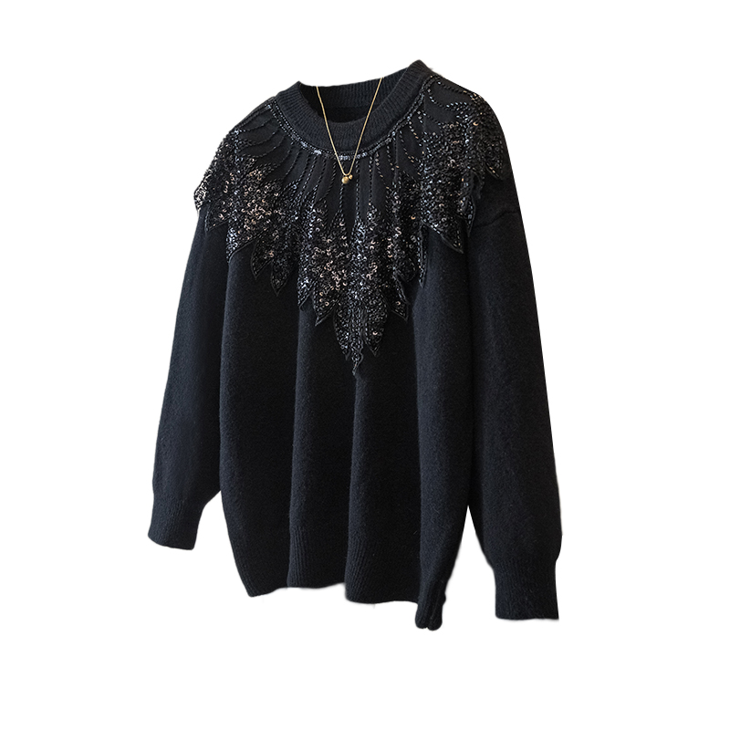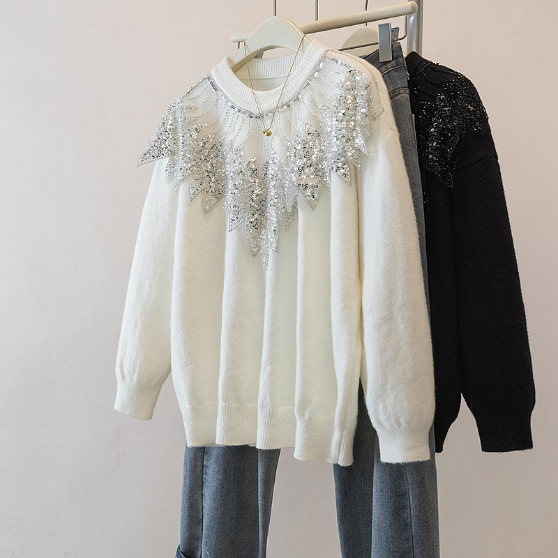 Home > 毛衣、针织衫 > FA51377# 胖mm高端精致蕾丝设计拼接重工烫钻秋冬上衣时尚气质圆领毛衣 服裝批發女裝批發服飾貨源