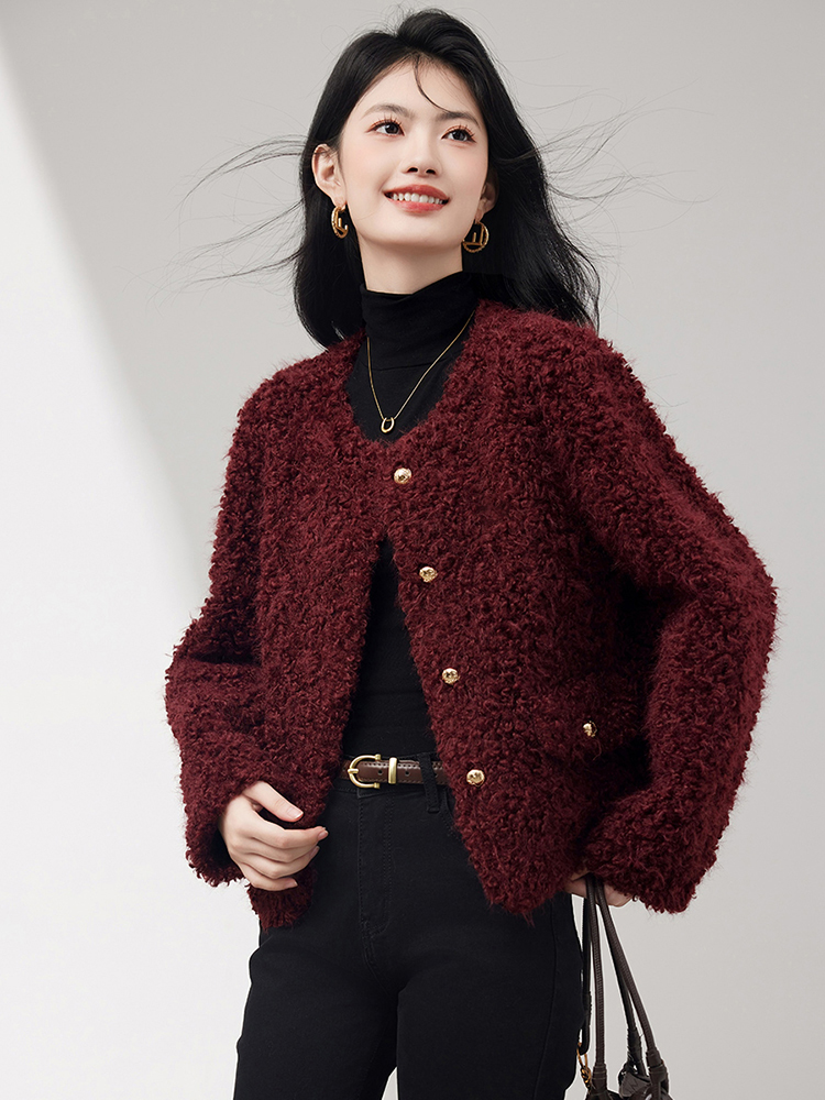 FA51483# 羊羔毛皮毛一体短外套女冬气质小个子高级感小香风高端仿皮草 服裝批發女裝批發服飾貨源
