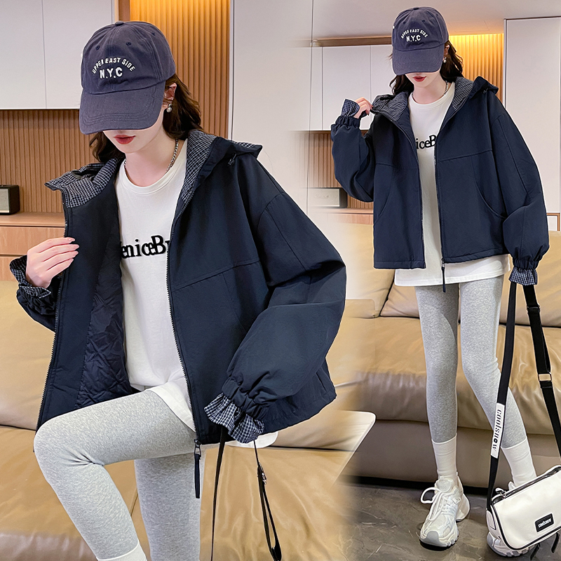 FA51569# 时尚连帽拼色棉服外套冲锋衣女新款宽松休闲小个子短款棉衣 服裝批發女裝批發服飾貨源