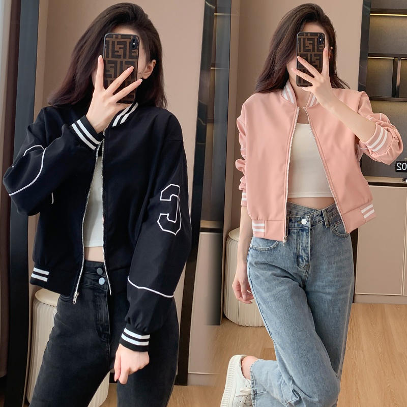 FA51572# 外套女新款棒球服百搭绣花设计感小个子休闲运动短夹克上衣 服裝批發女裝批發服飾貨源
