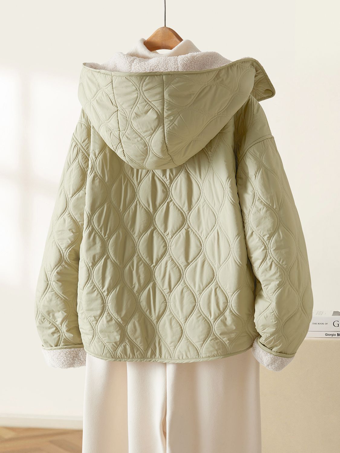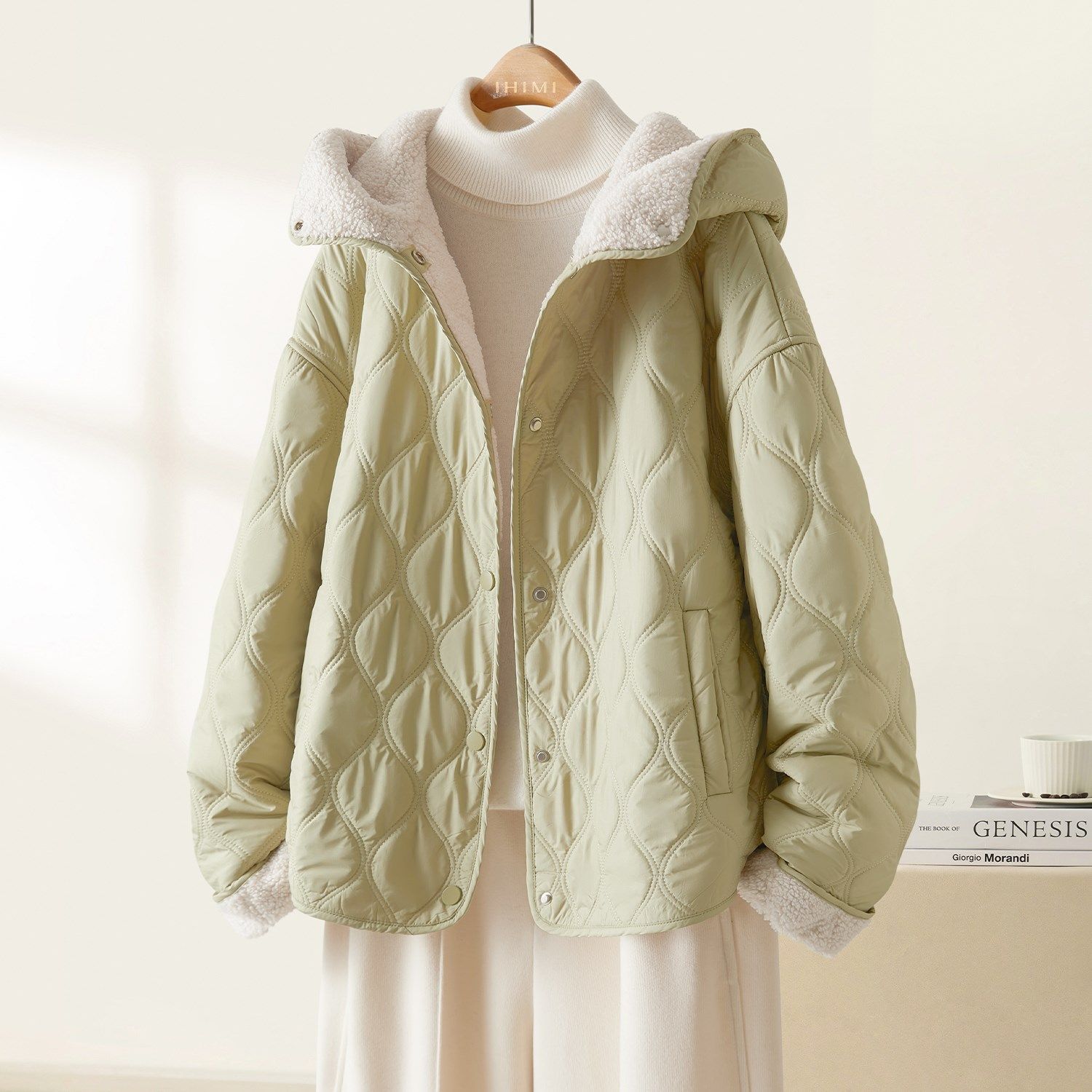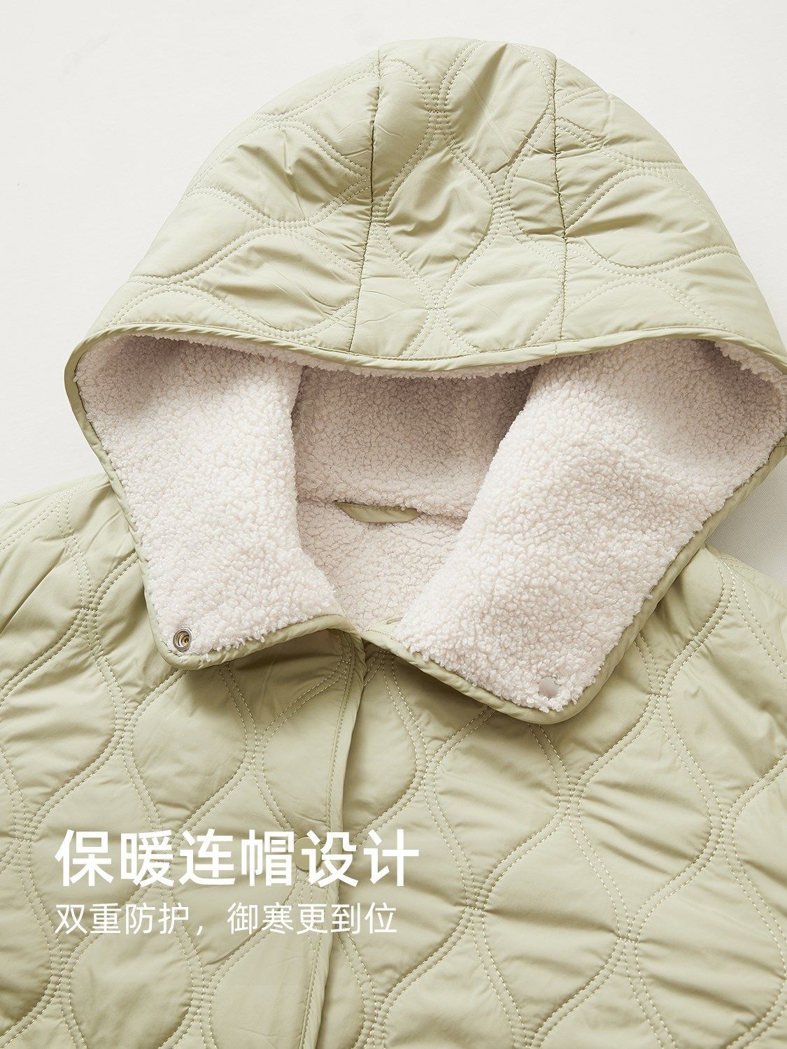 FA51718# 连帽毛绒绒拼接棉服外套女冬季新款加厚保暖百搭夹棉短上衣 服裝批發女裝批發服飾貨源