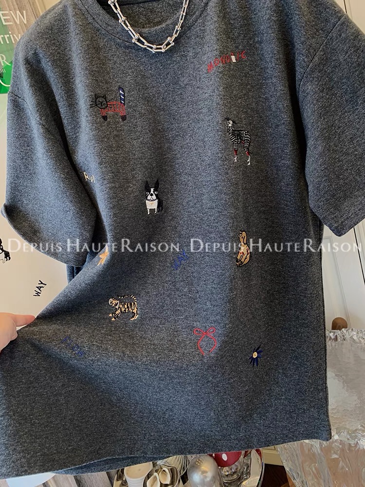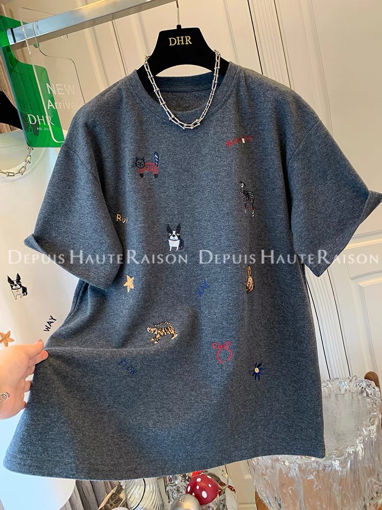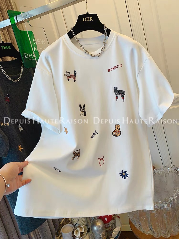 FA51852# 原版质量早春特大码300斤刺绣磨毛短袖圆领T恤宽松上衣女新款 服裝批發女裝批發服飾貨源