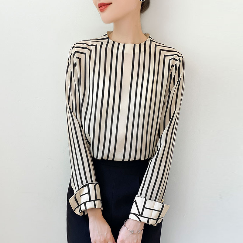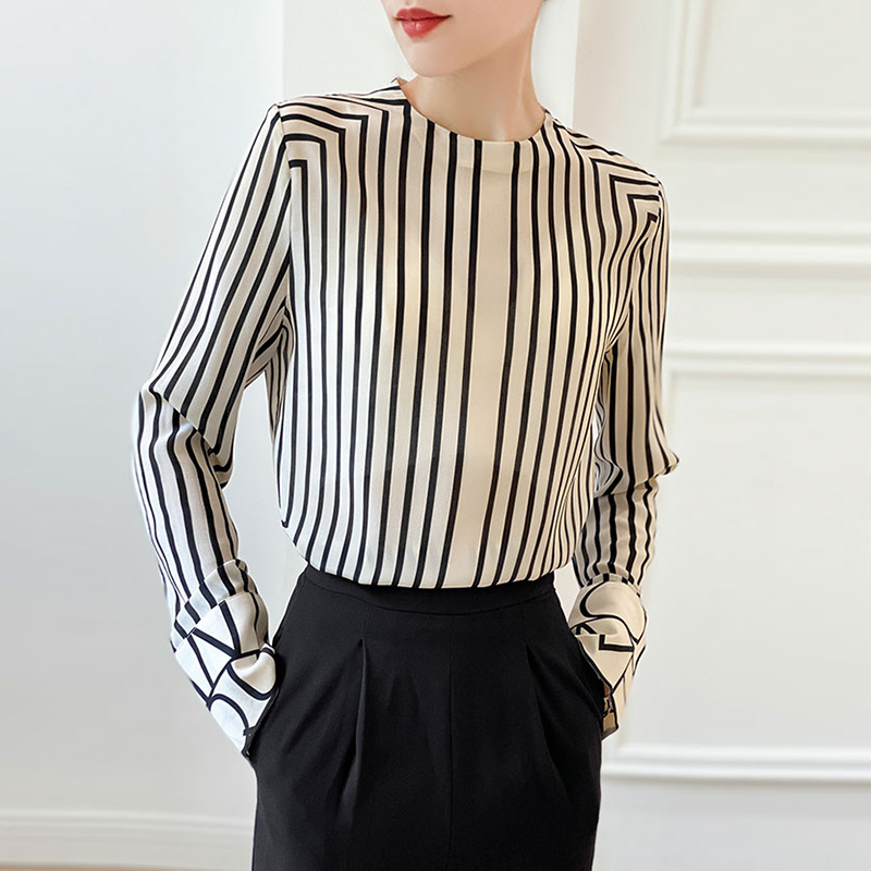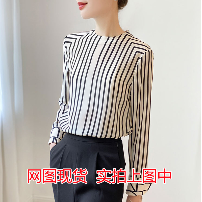 FA51913# 法式高端黑白条纹气质圆领衬衫女设计感春季新款上衣 服裝批發女裝批發服飾貨源