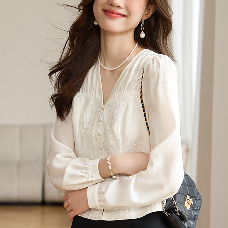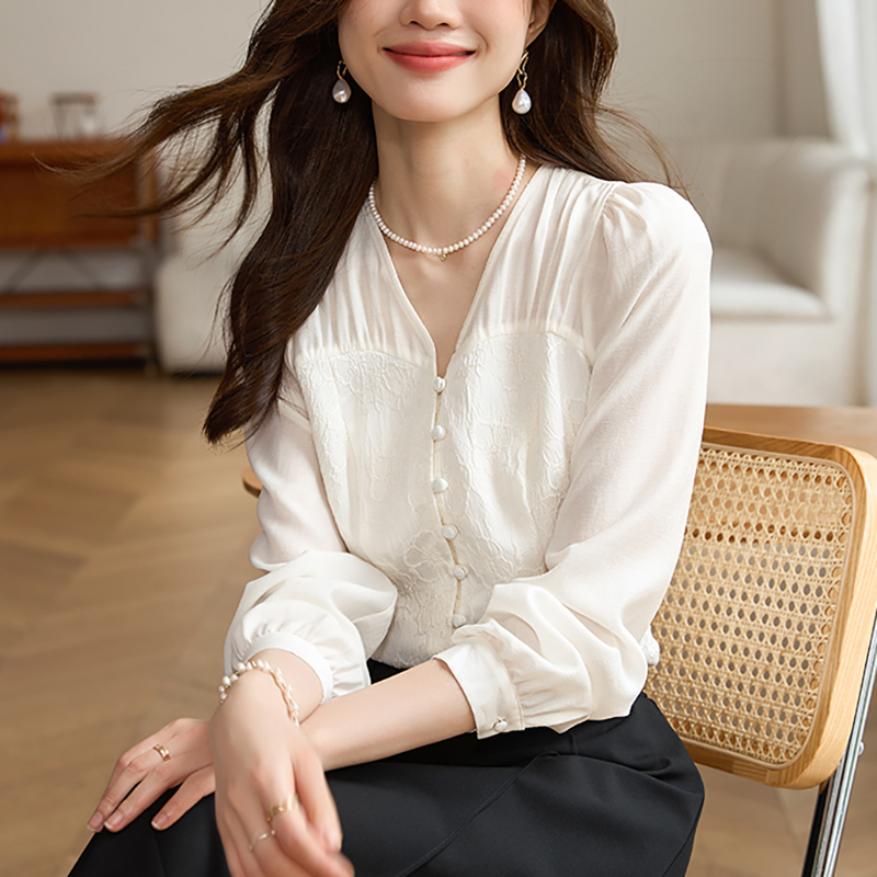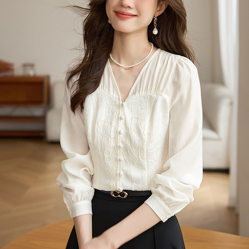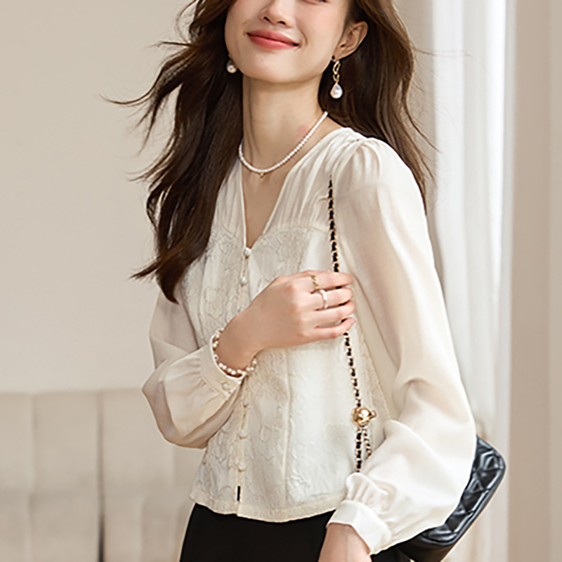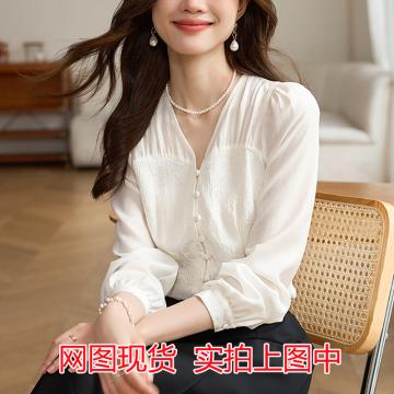 FA51914# 浮雕感新中式提花雪纺衬衫女初春透气白色绝美小衫上衣 服裝批發女裝批發服飾貨源