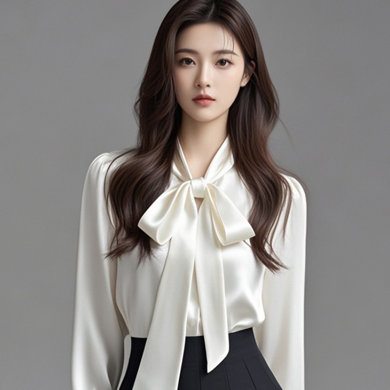 FA51915# 春秋新款高级感气质飘带蝴蝶结衬衫女长袖职业教资穿搭白衬衣 服裝批發女裝批發服飾貨源