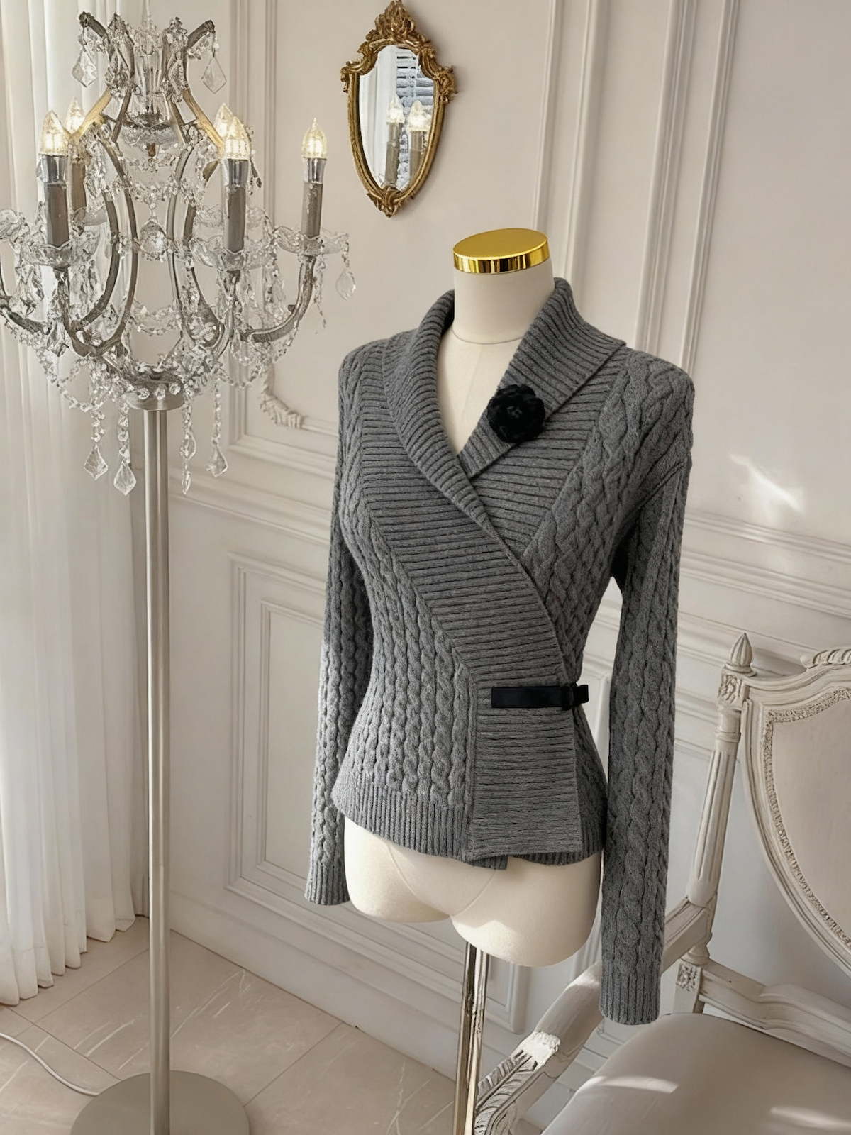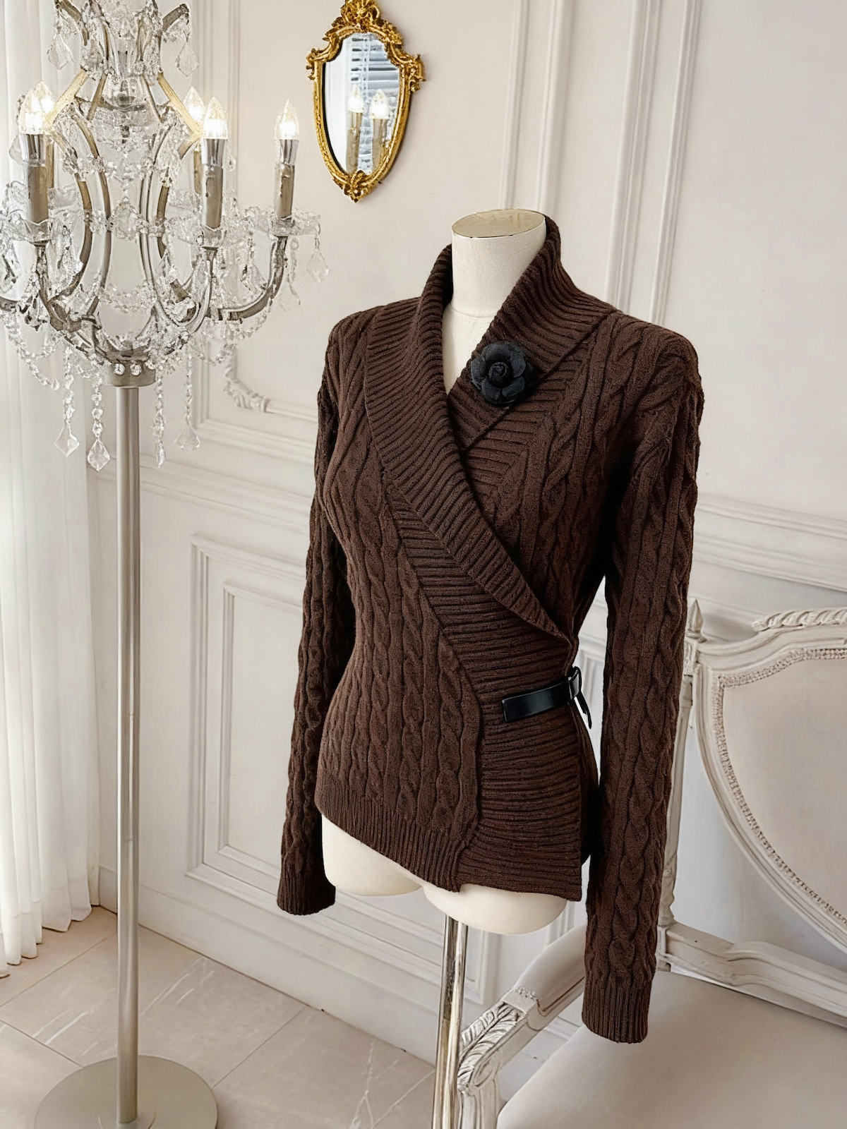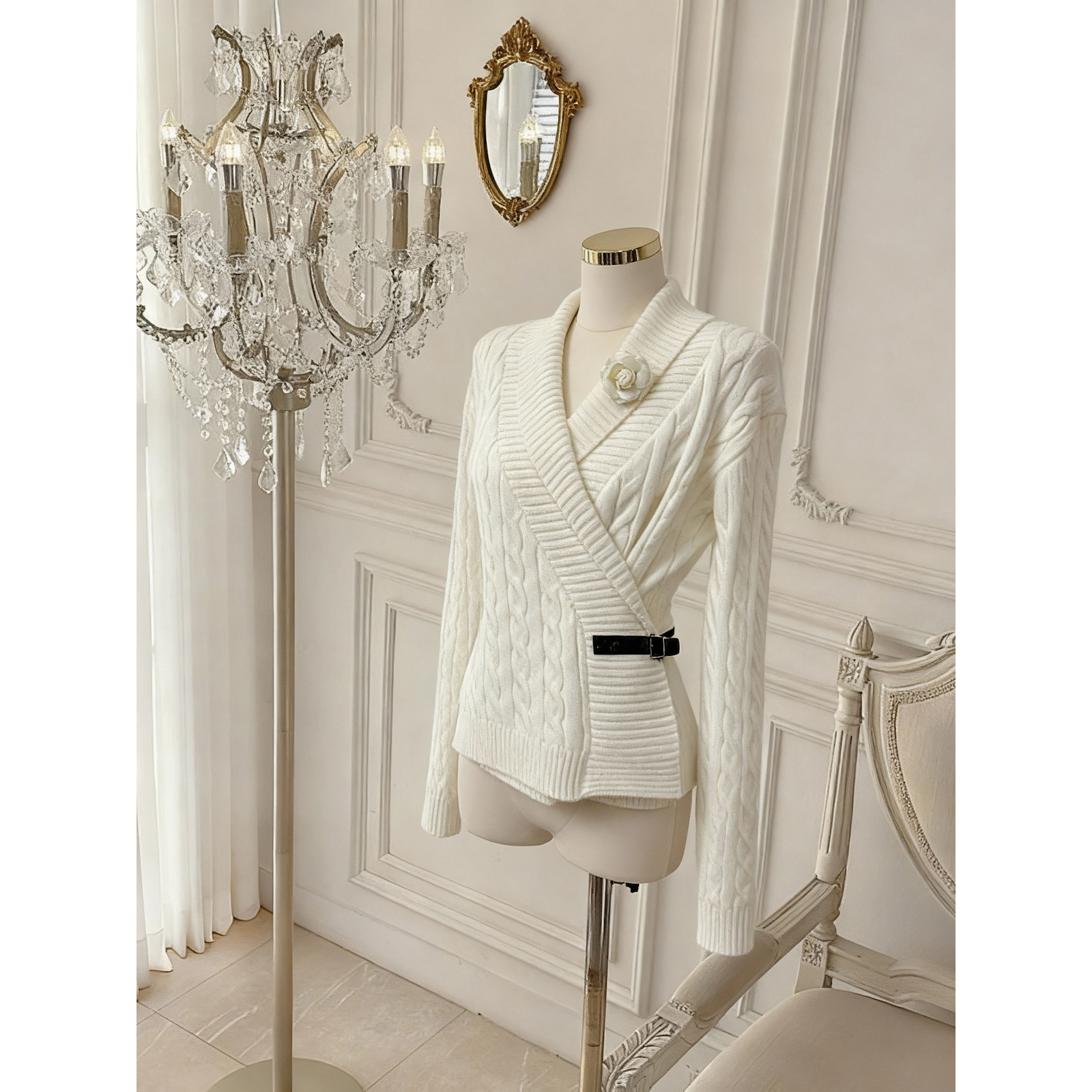 FA51929# 小众斜领收腰长袖毛衣针织衫女冬季休闲显瘦内搭上衣 服裝批發女裝批發服飾貨源