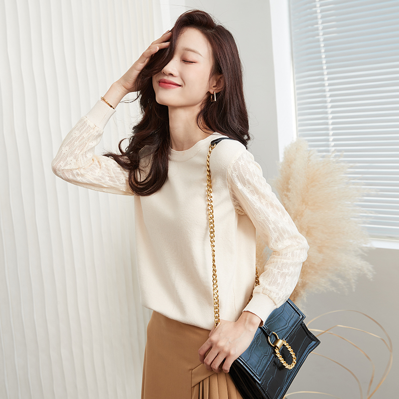 FA51985# 拼接圆领针织打底衫女春季新款女欧货毛衣内搭时尚上衣 服裝批發女裝批發服飾貨源
