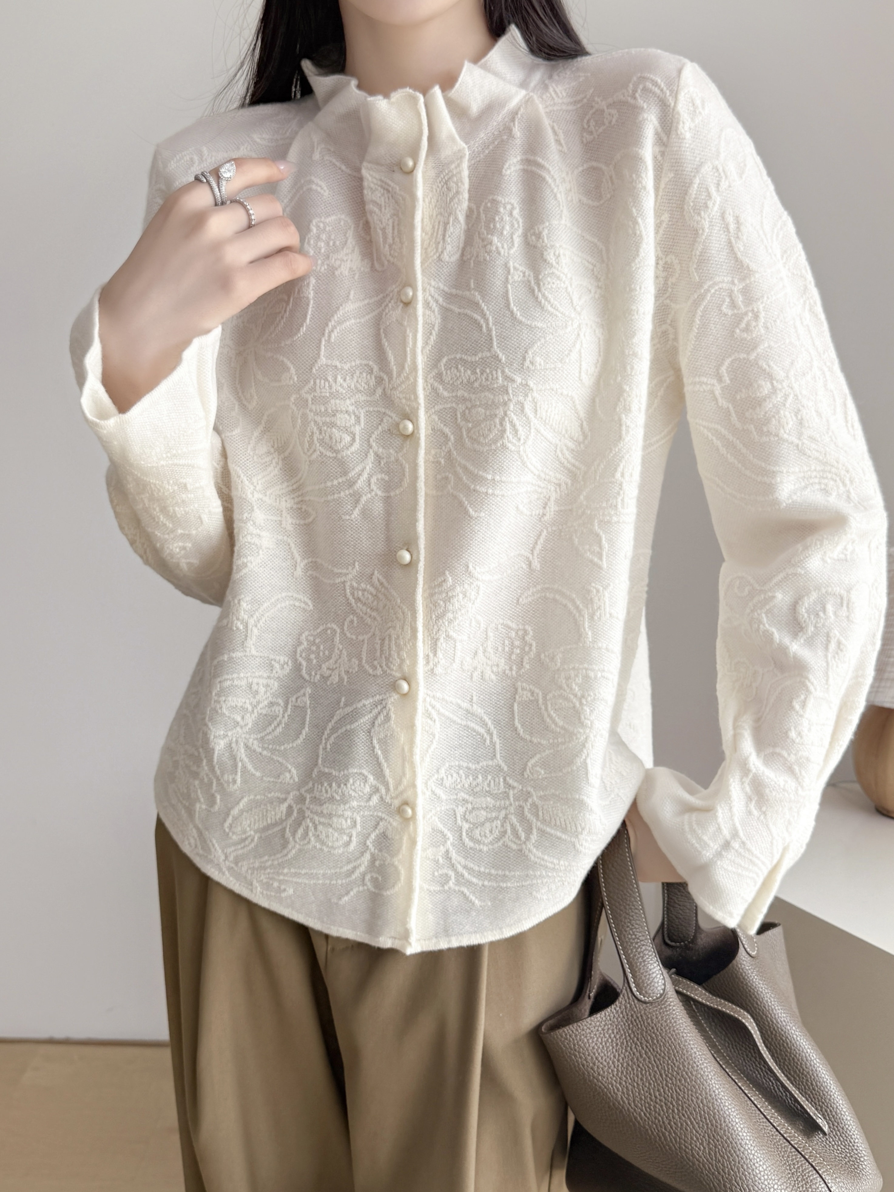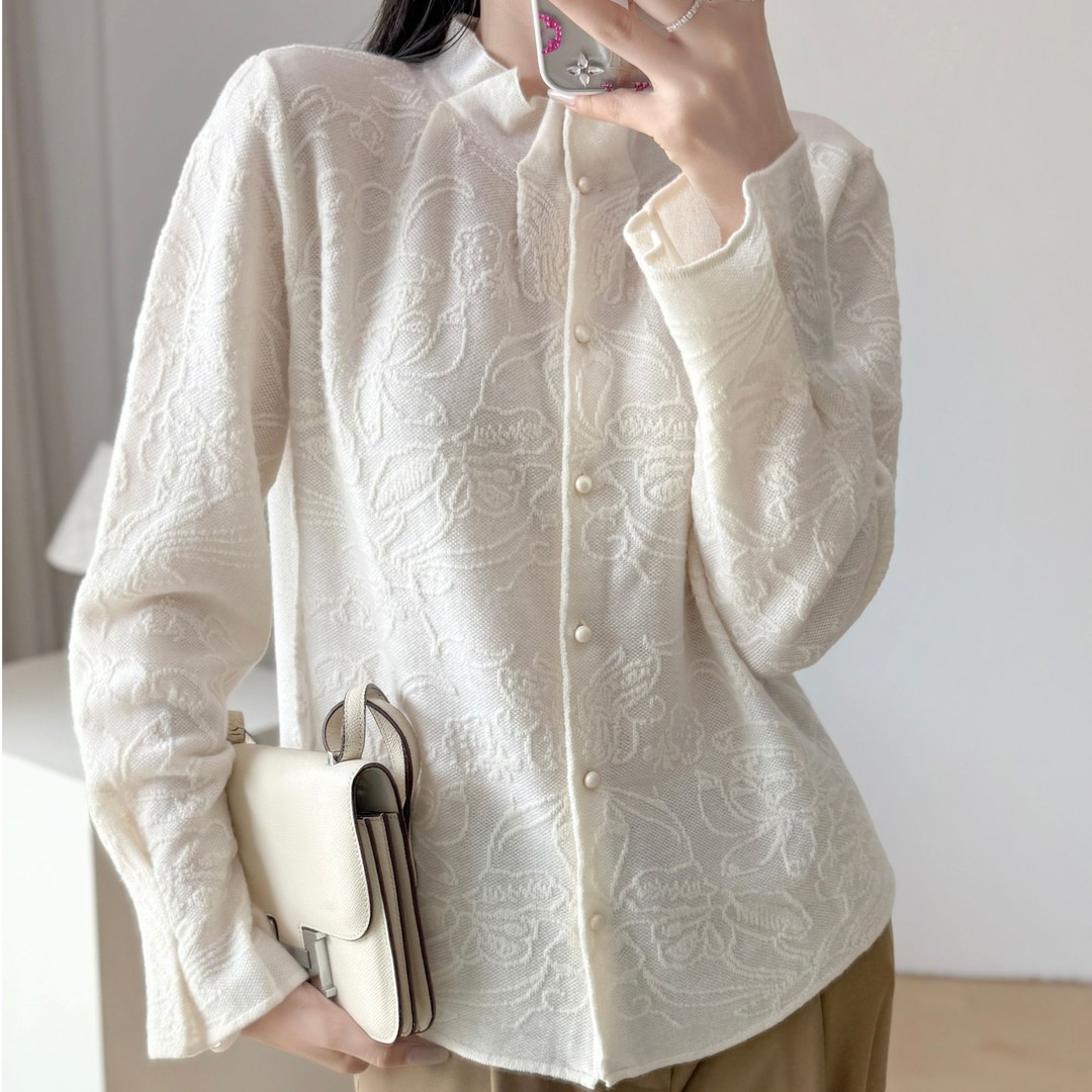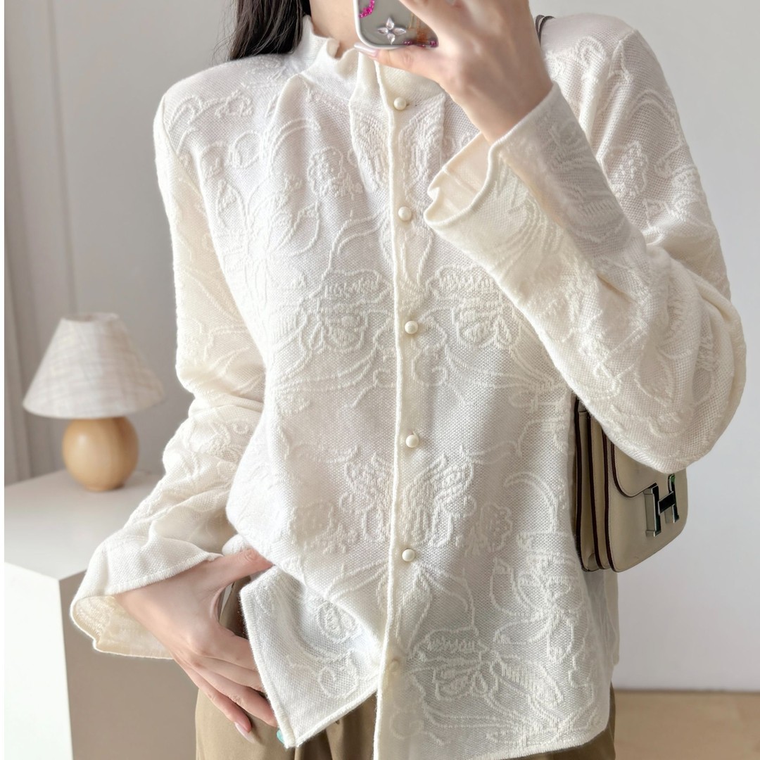 FA52045# 高品质设计师款全羊毛提花木耳领袖针织开衫 服裝批發女裝批發服飾貨源