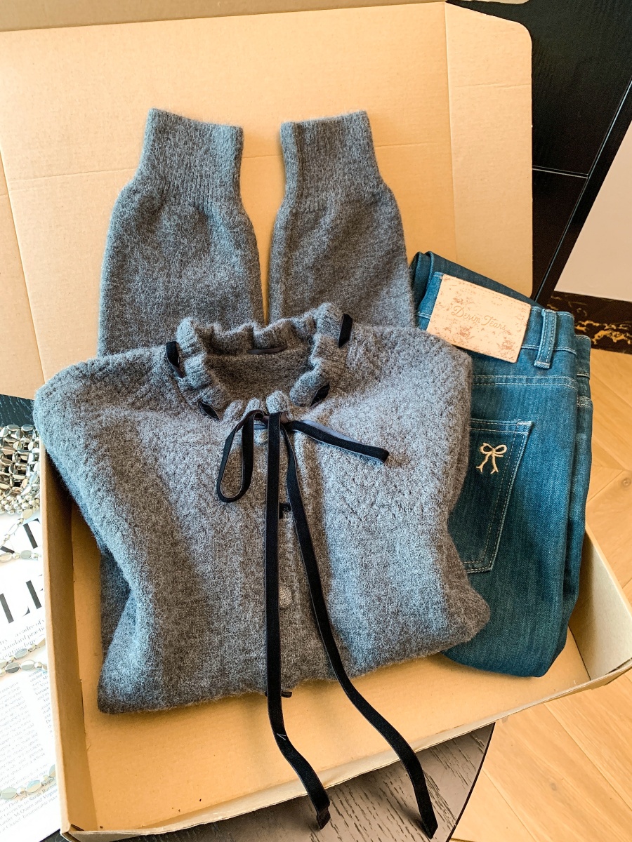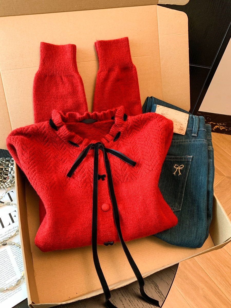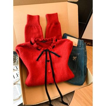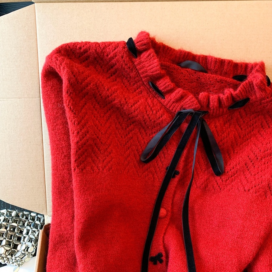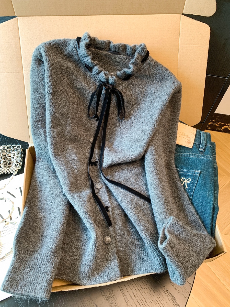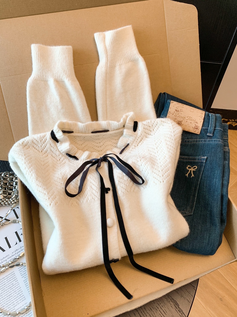 FA52052# 法式小香风蝴蝶结立领毛衣女秋冬开衫针织衫高级感打底上衣 服裝批發女裝批發服飾貨源