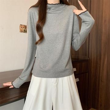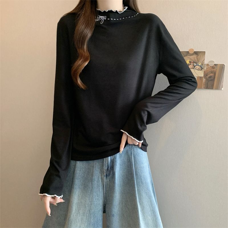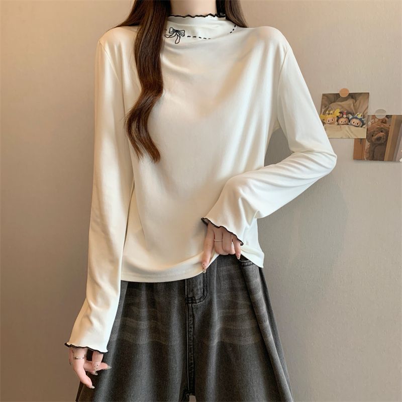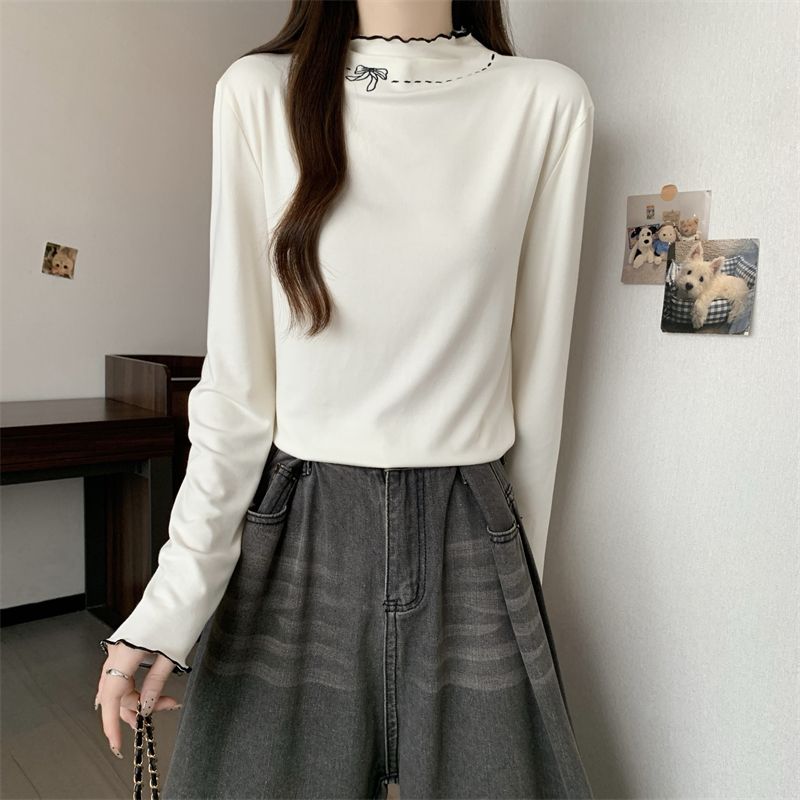 FA52348# 半高领打底衫女秋冬新款蝴蝶结内搭保暖上衣韩版t恤女 服裝批發女裝批發服飾貨源