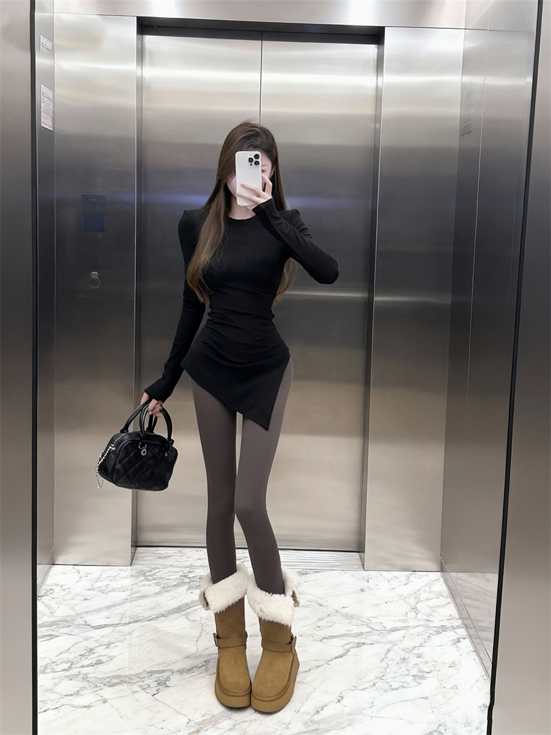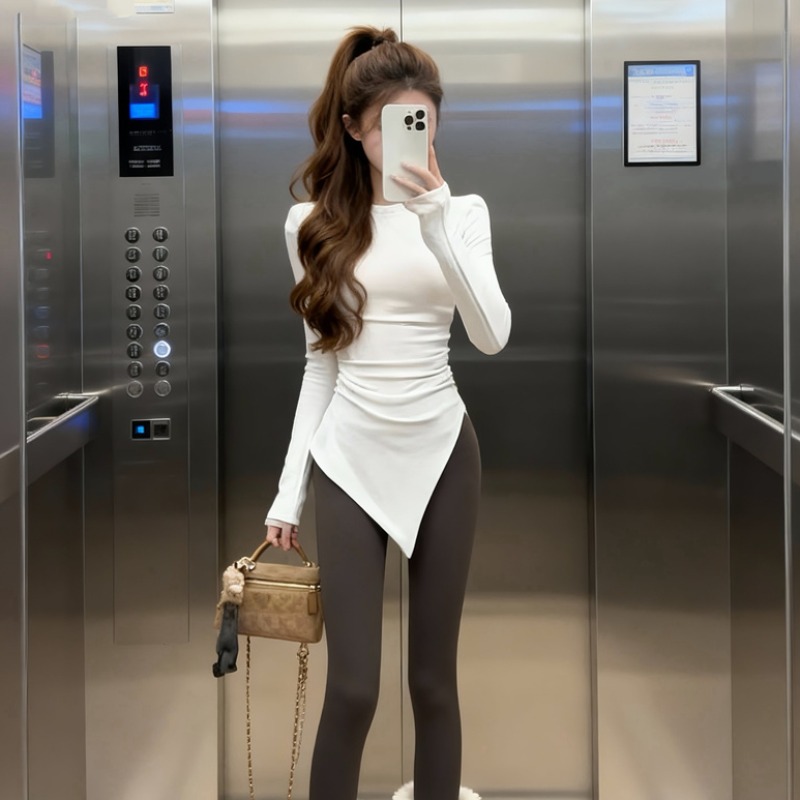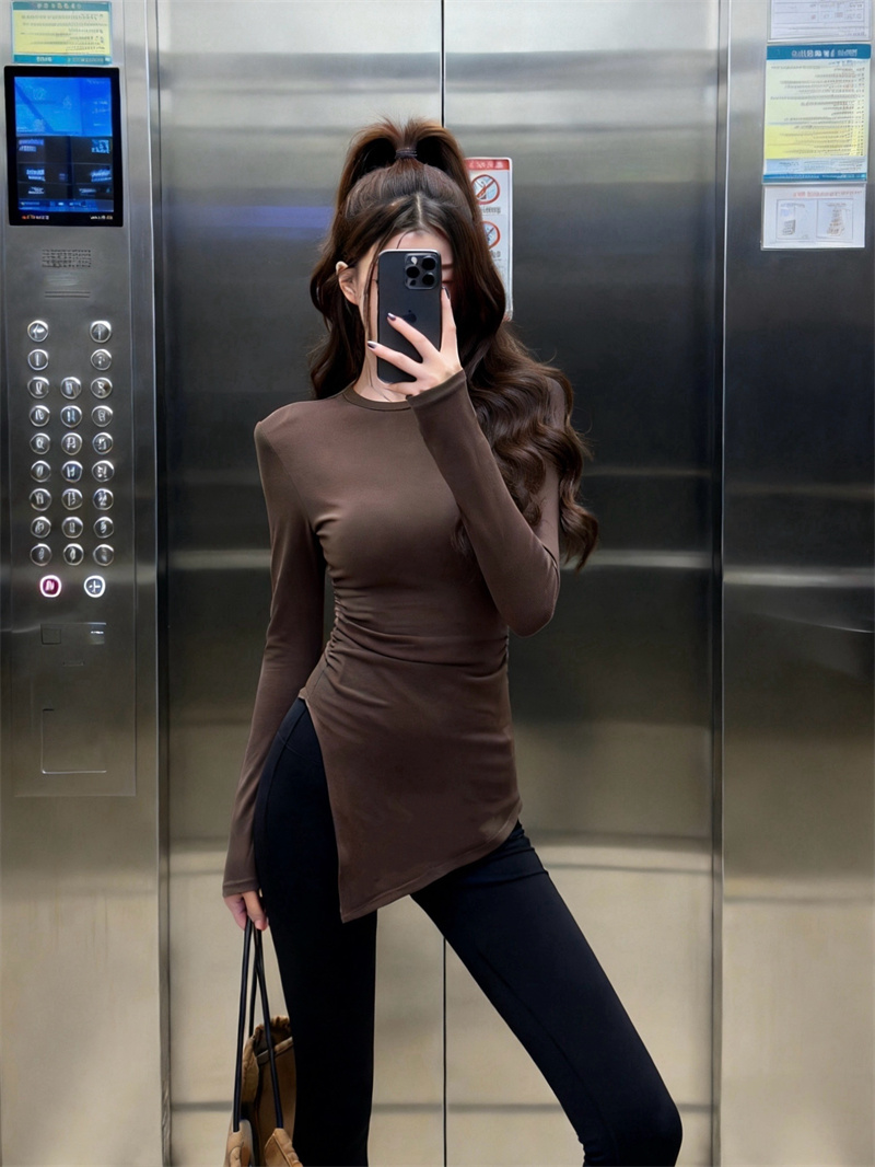 FA52381# 春款纯欲风中长款不规则上衣小衫女士修身显瘦打底衫 服裝批發女裝批發服飾貨源
