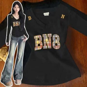 FA52562# 春秋季新款韩版长袖T恤女设计感 服裝批發女裝批發服飾貨源