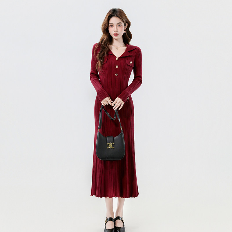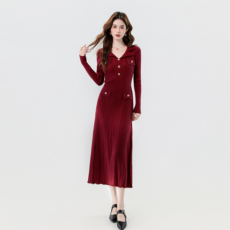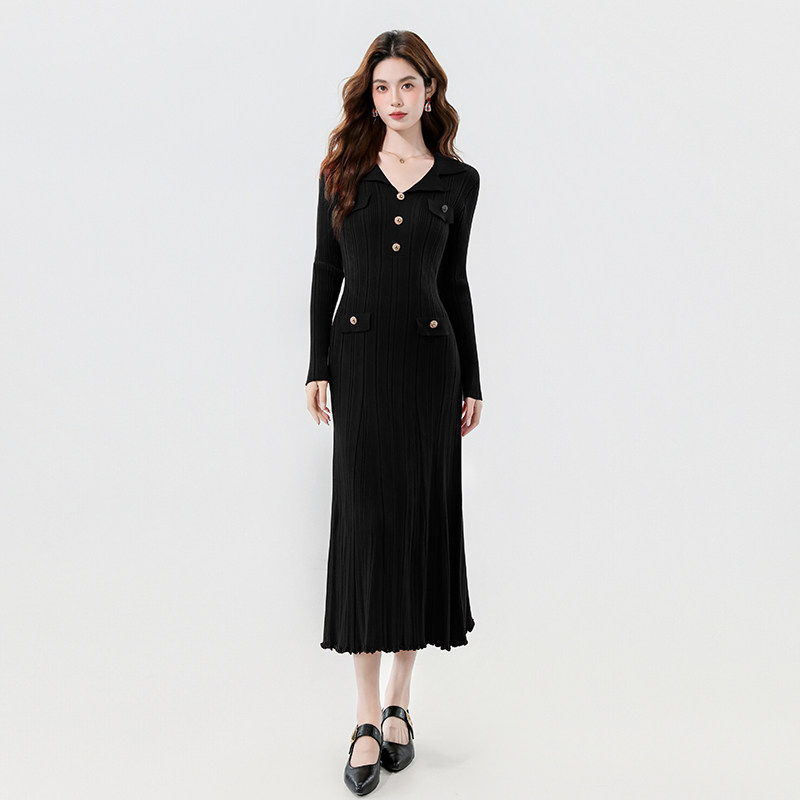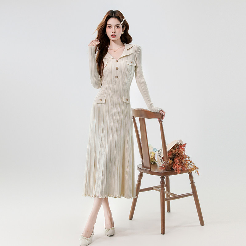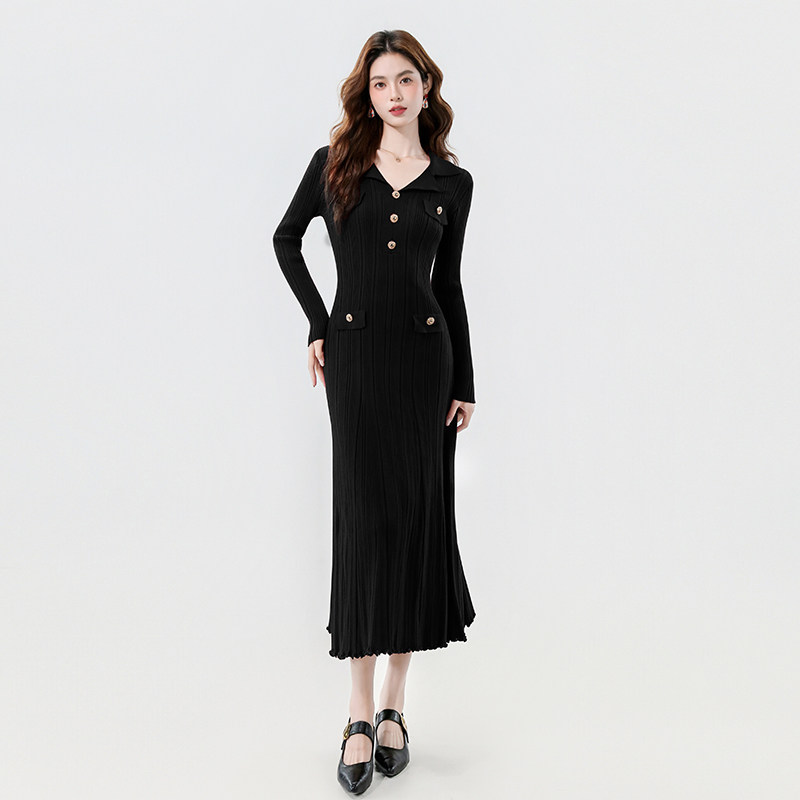 FA52824# 韩国2026春款高级弹力针织打底连衣裙女收腰显瘦别致漂亮毛衣长裙 服裝批發女裝批發服飾貨源
