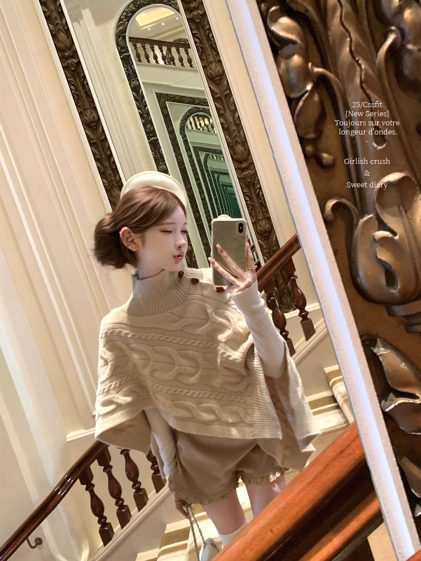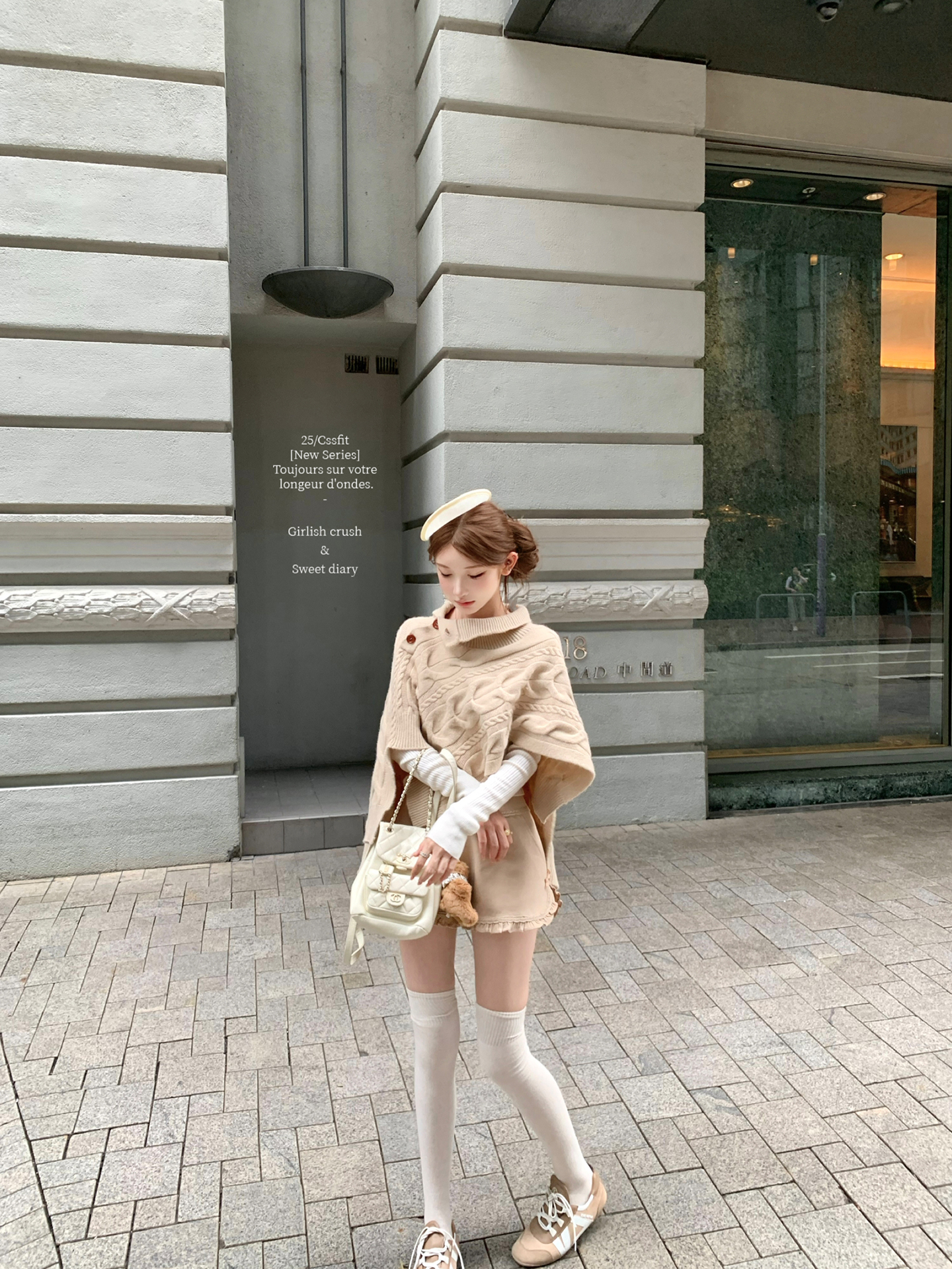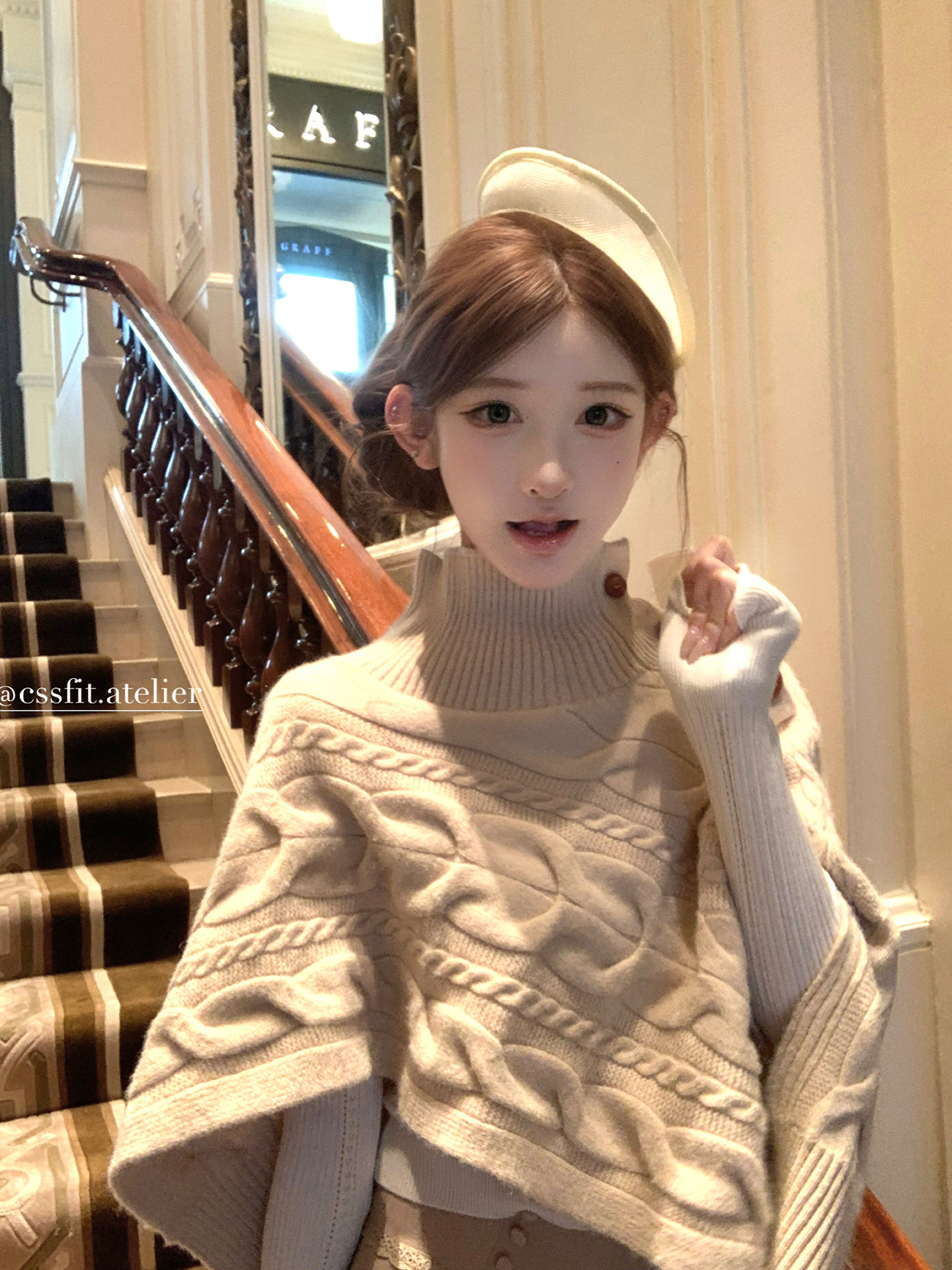 FA52836# 焦糖利口酒vivienw*土星高领麻花针织不规则斗篷 服裝批發女裝批發服飾貨源