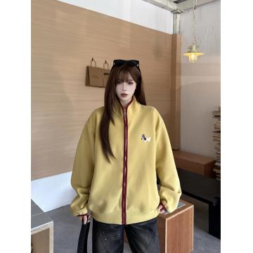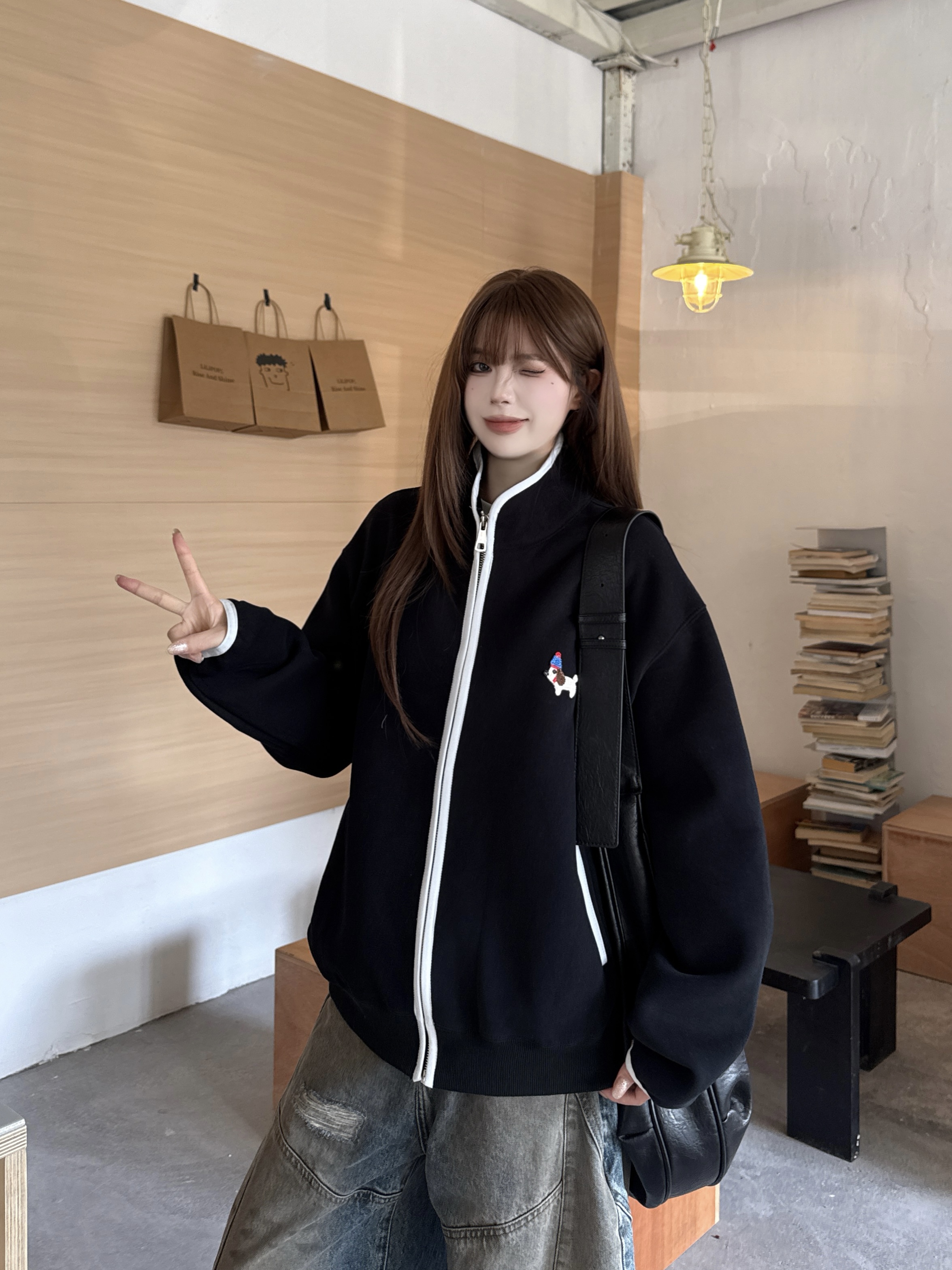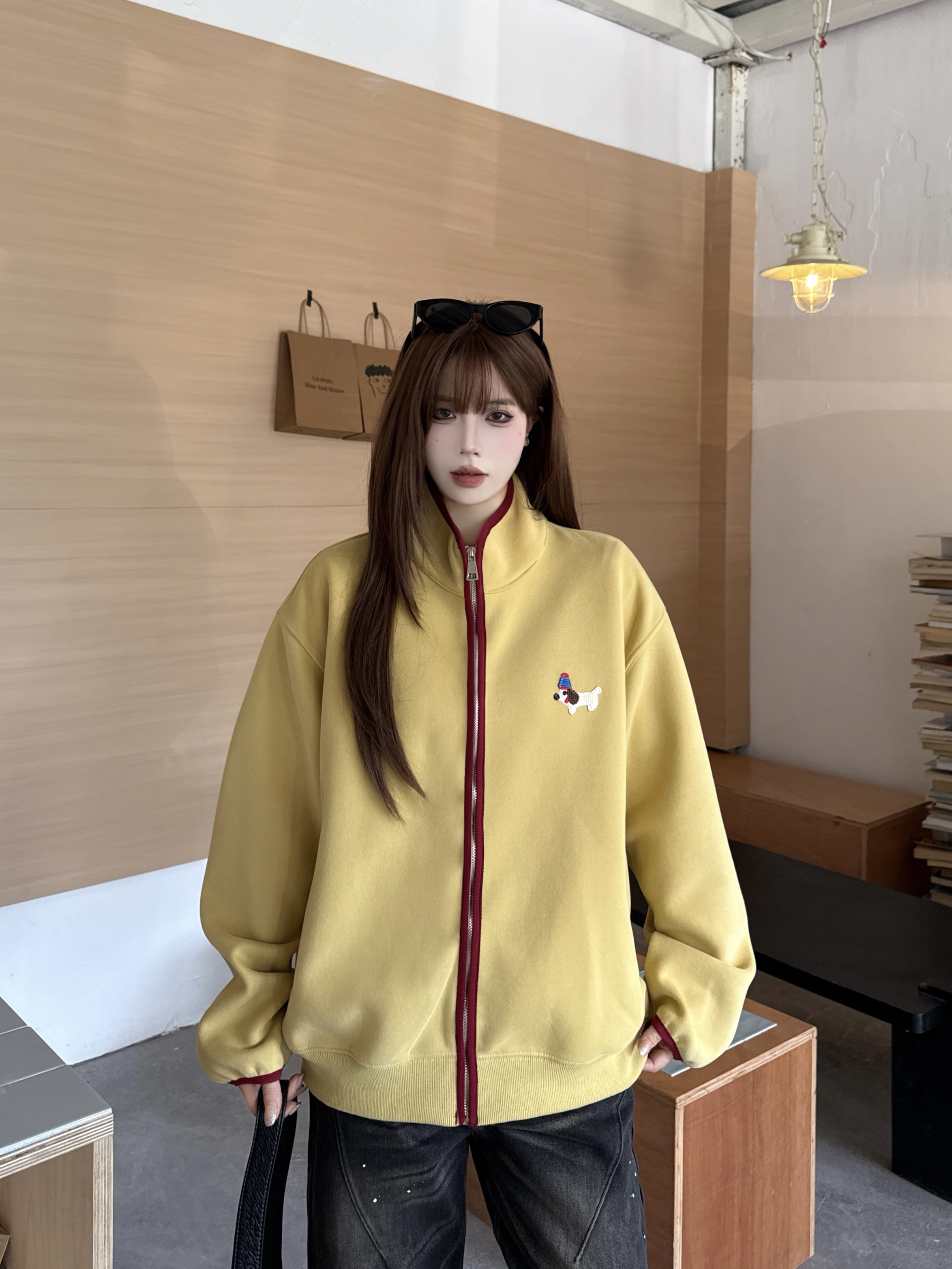 FA52841# 韩系慵懒可爱腊肠小狗立领卫衣外套女撞色宽松休闲上衣潮 服裝批發女裝批發服飾貨源