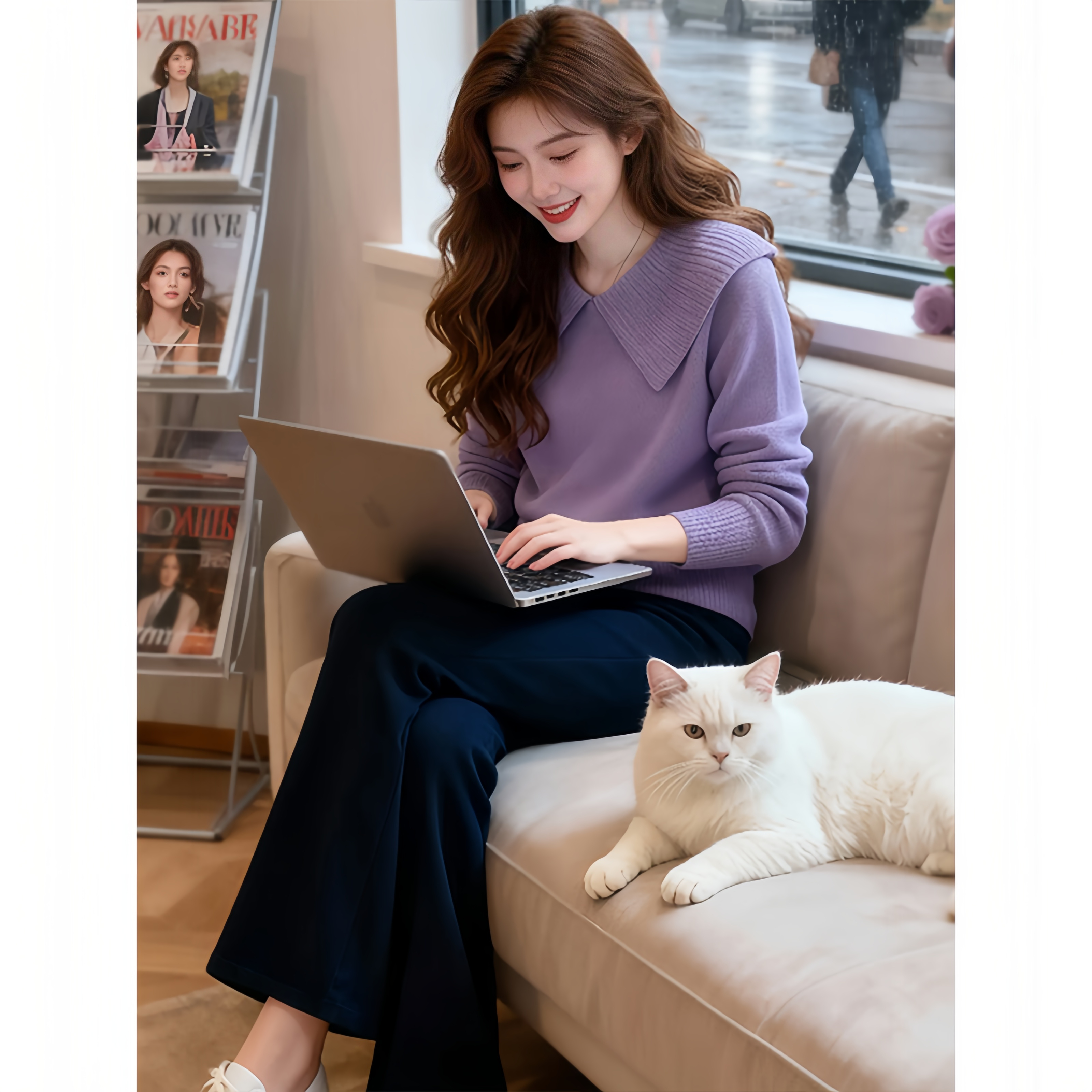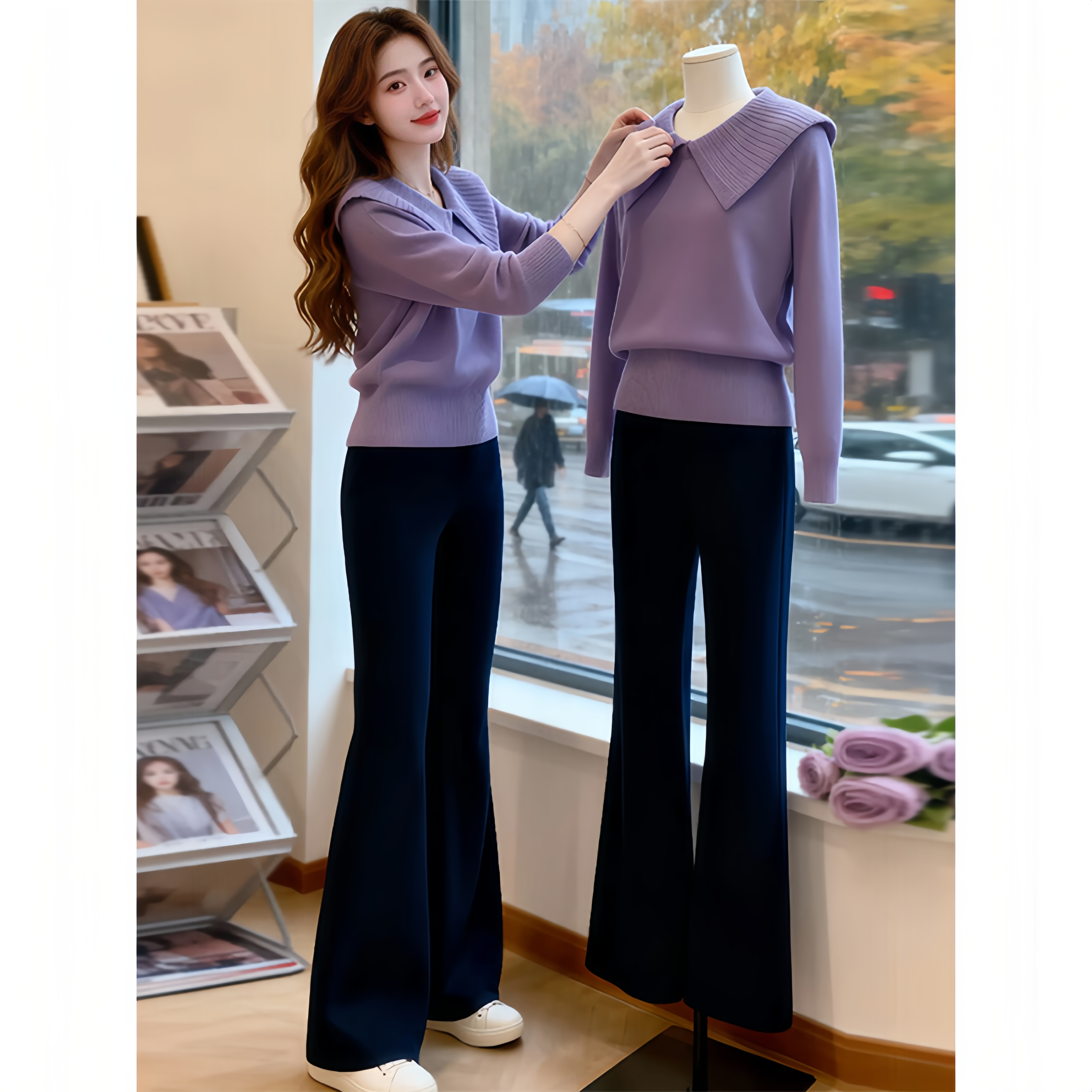 Home > 韩版套装 > FA52846# 韩系高级感超好看紫色娃娃领针织衫毛衣女秋冬新款设计感小众上衣 服裝批發女裝批發服飾貨源