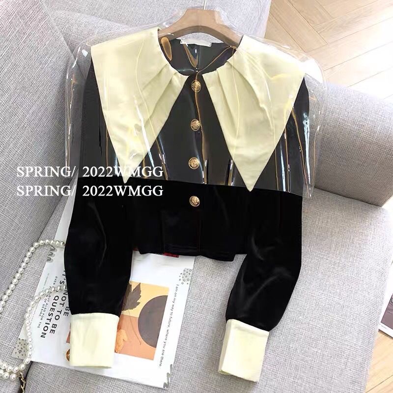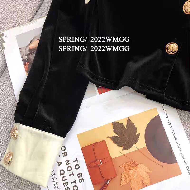 FA52860# 黑色丝绒衬衫女设计感小众法式高级感大翻领时尚洋气短款长袖上衣 服裝批發女裝批發服飾貨源