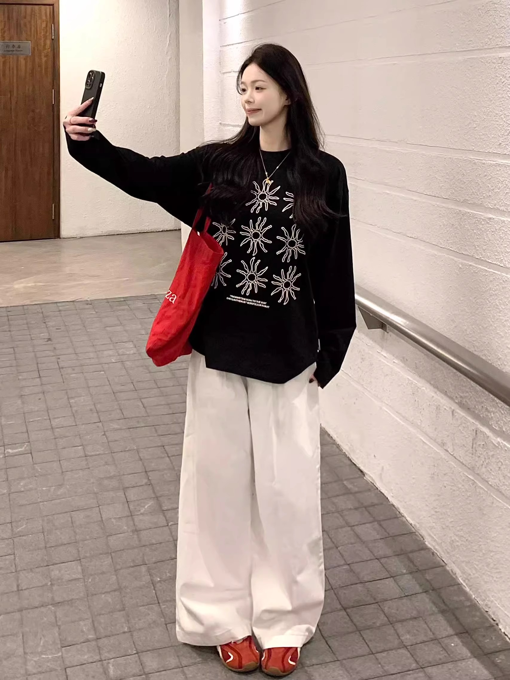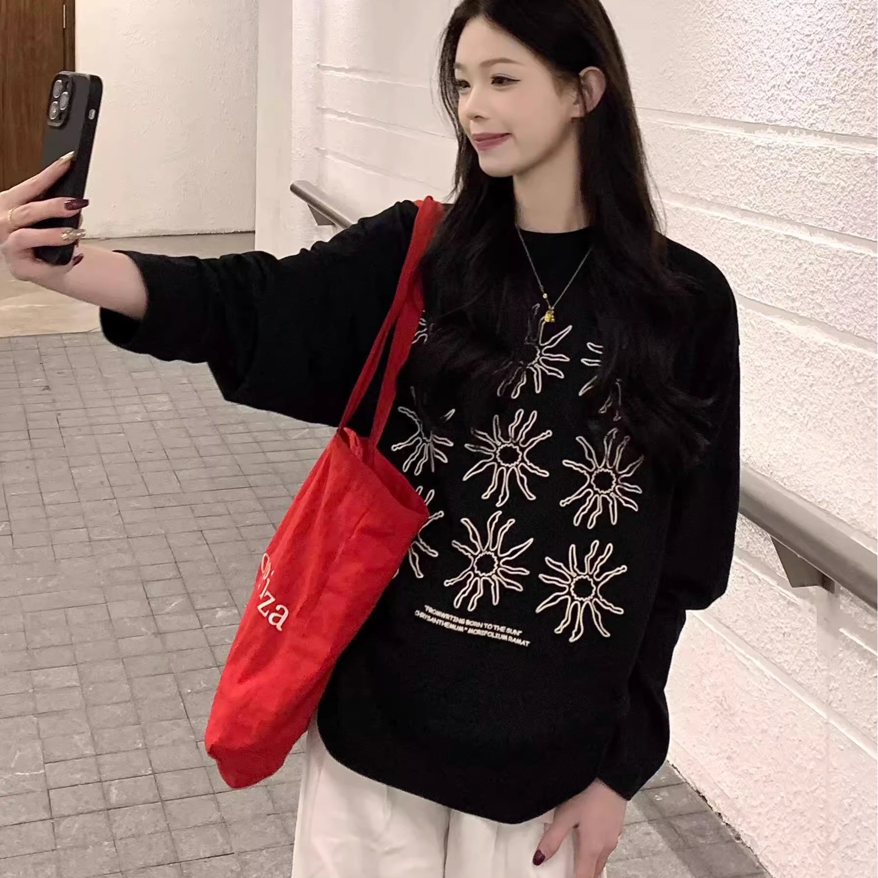 FA52876# 棉春装长袖T恤女宽松上衣印花 服裝批發女裝批發服飾貨源