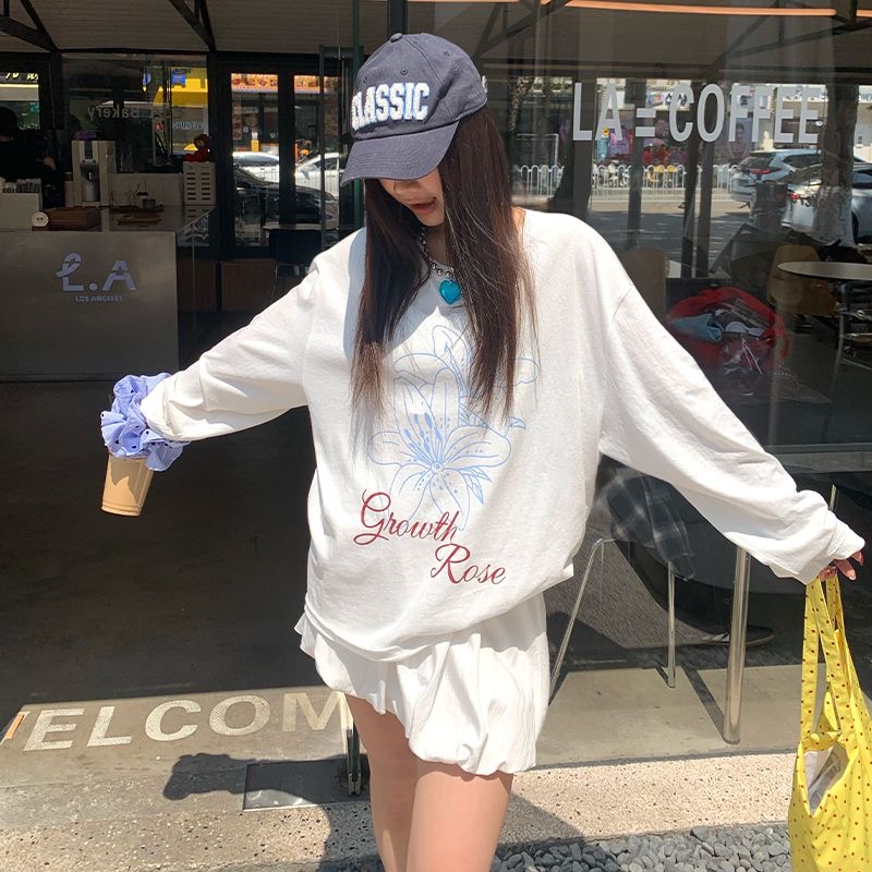FA52877# 棉春装长袖T恤女宽松上衣印花 服裝批發女裝批發服飾貨源