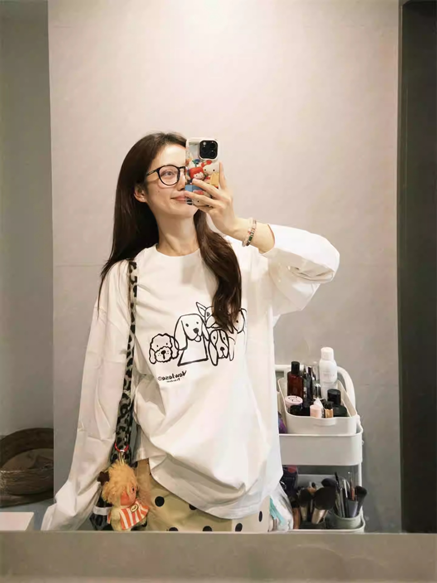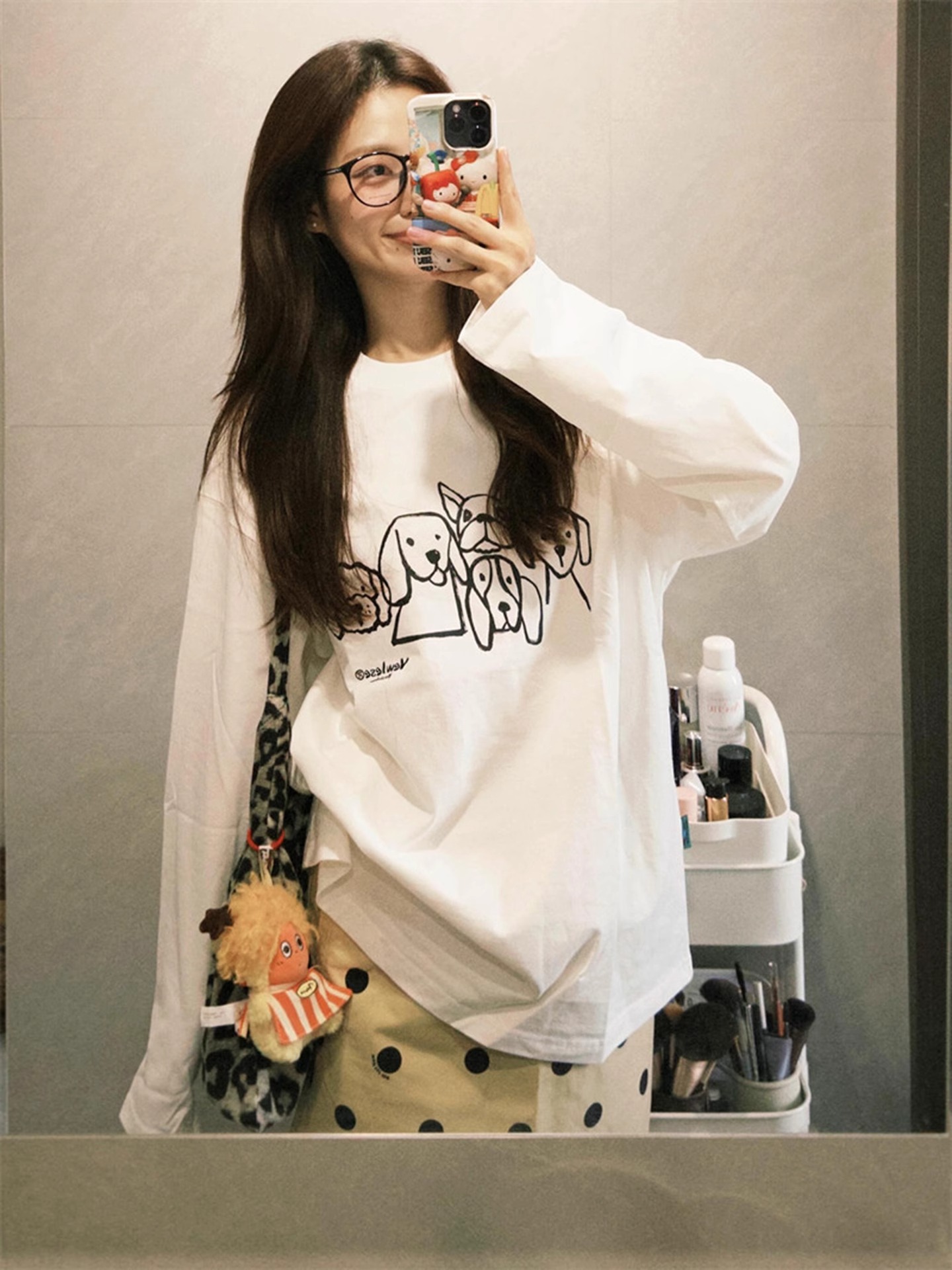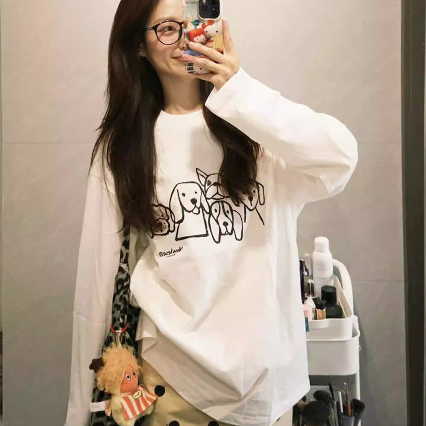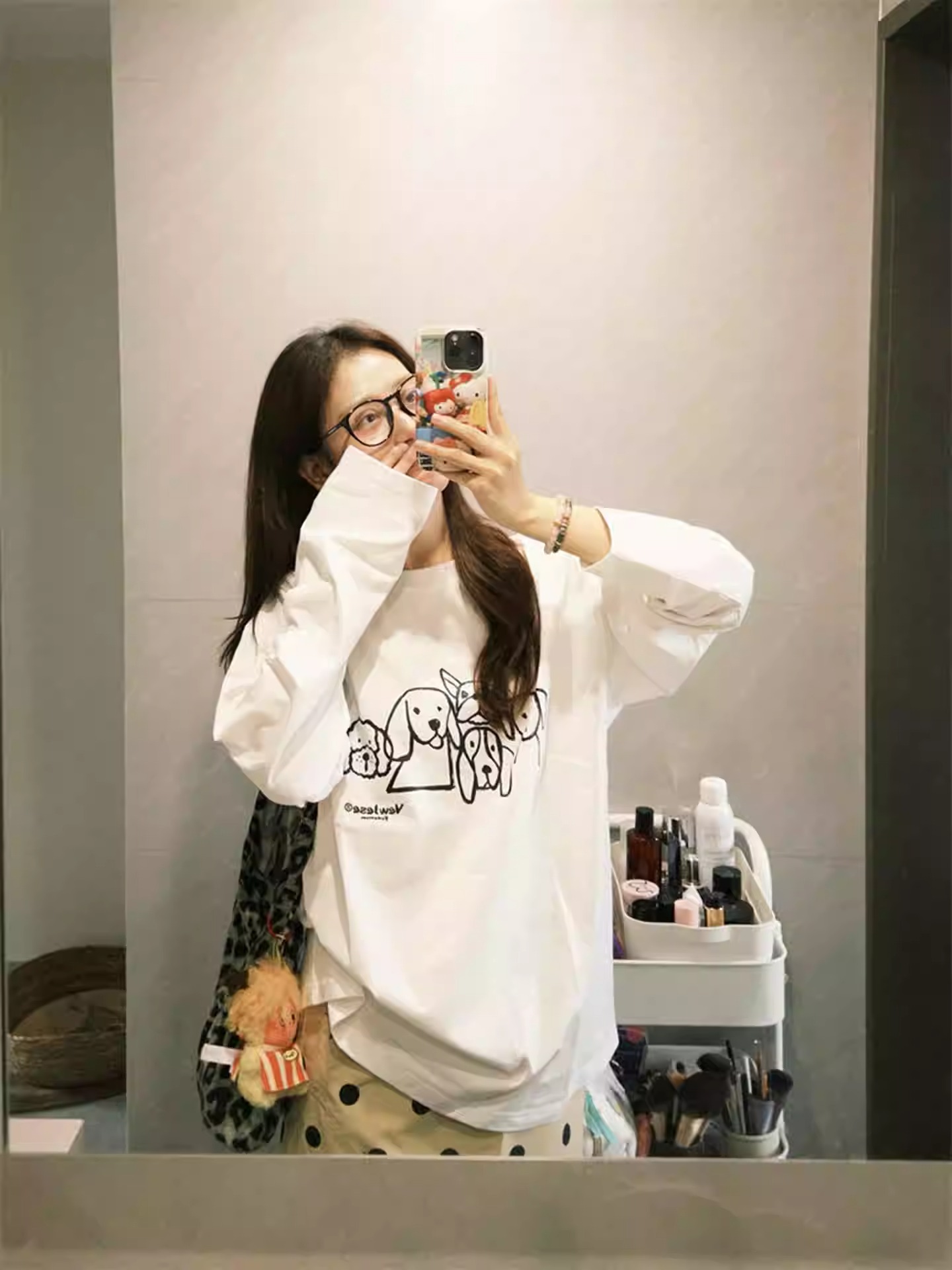 FA52881# 棉春装长袖T恤女宽松上衣印花 服裝批發女裝批發服飾貨源