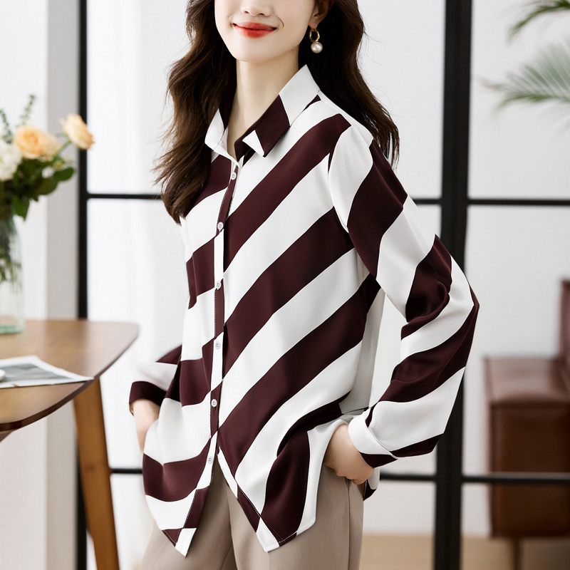 FA53220# 大码宽松花色春秋女装翻领彩色雪纺衫上衣开衫衬衫打底衫衬衣 服裝批發女裝批發服飾貨源