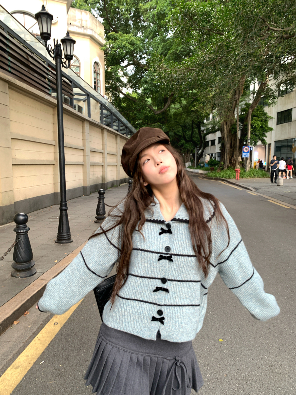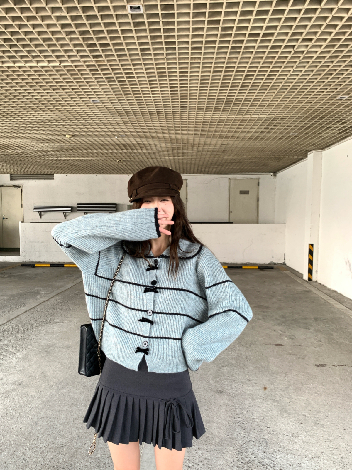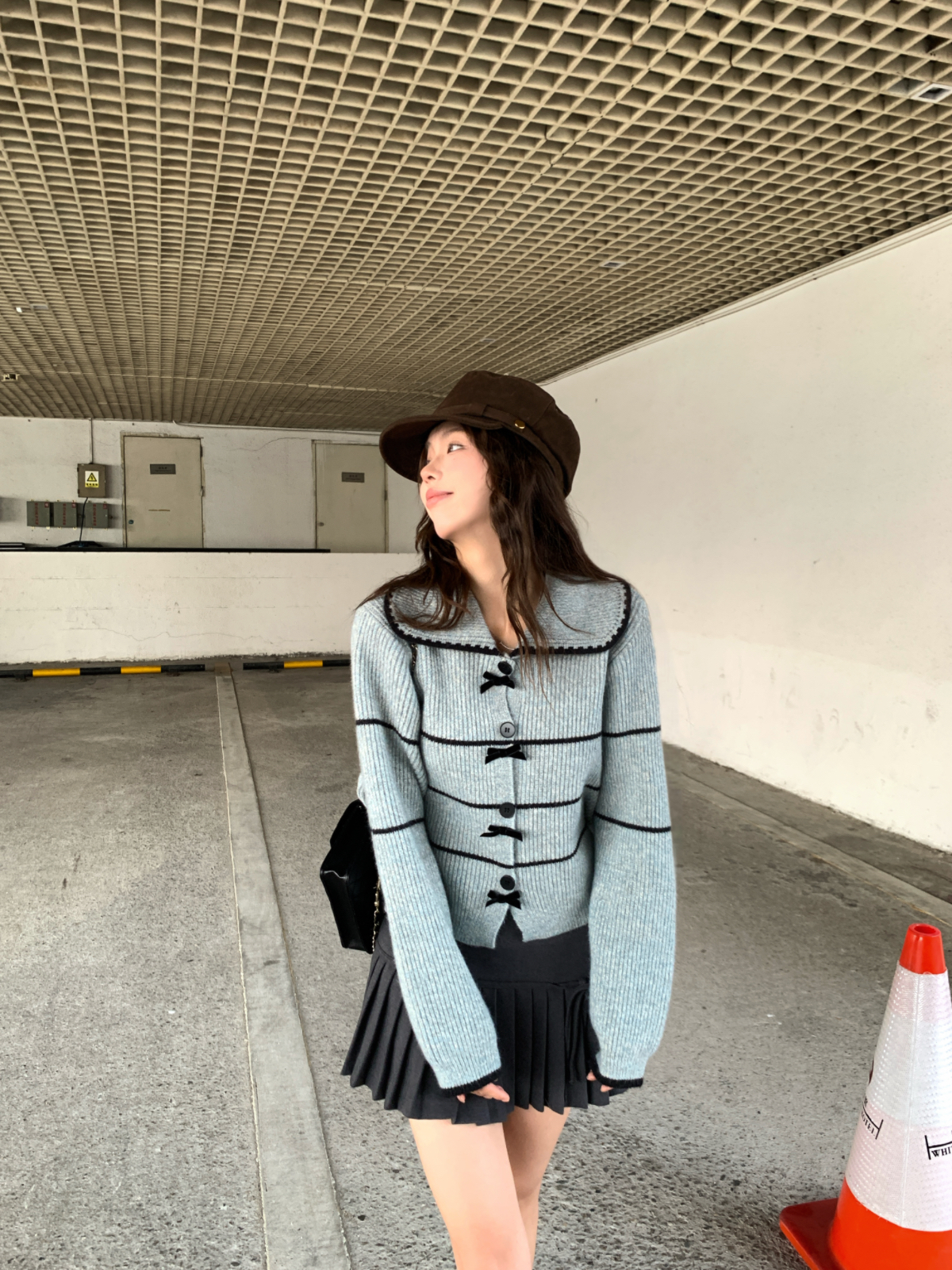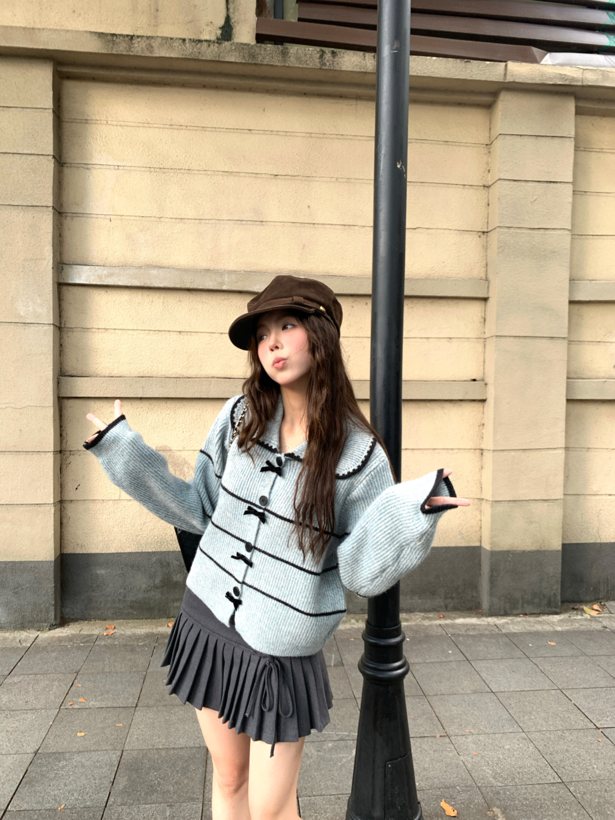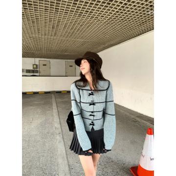 FA53239# ~蓬松肌理感娃娃领针织衫高级感条纹开衫毛衣外套早秋 服裝批發女裝批發服飾貨源