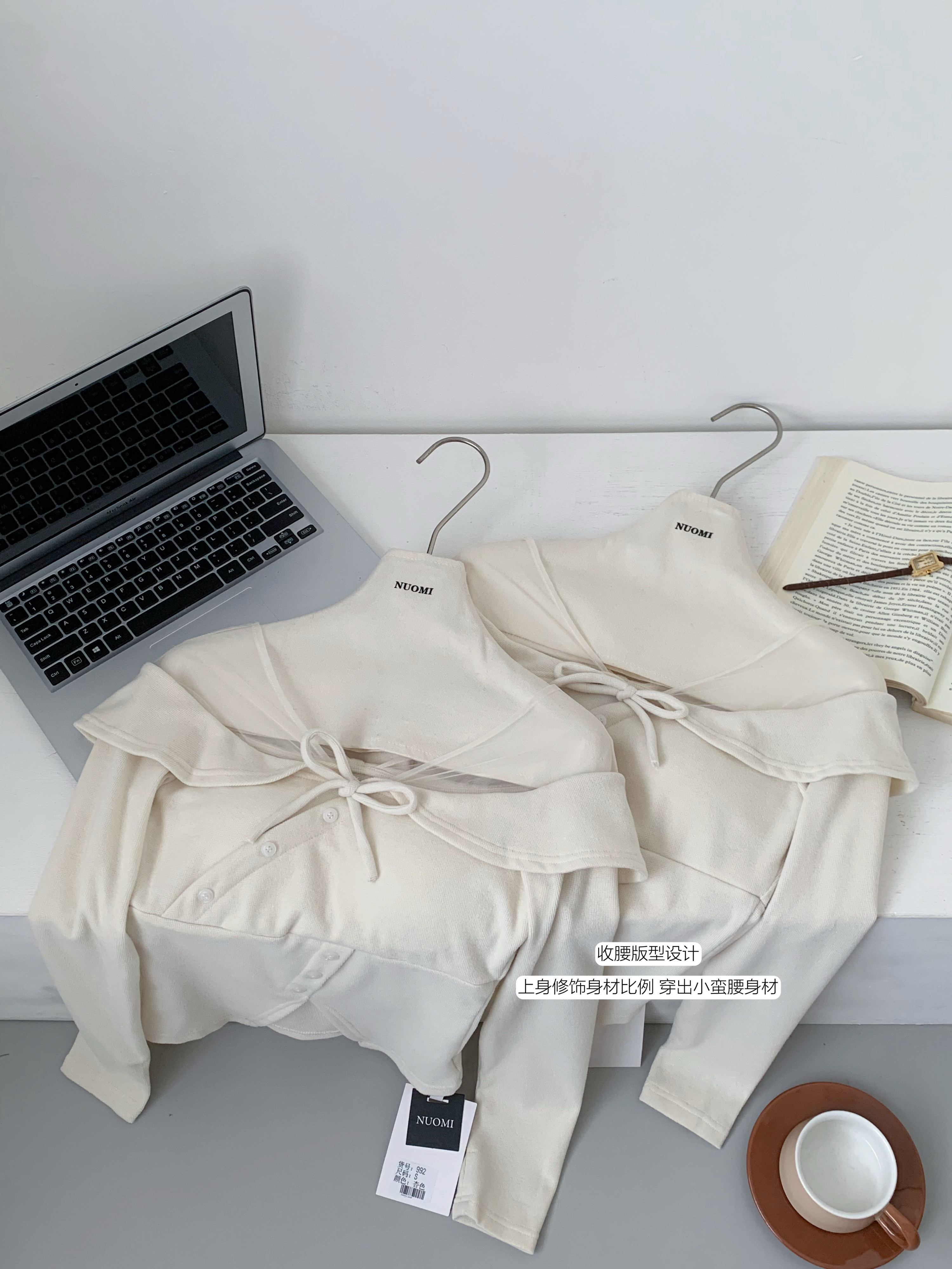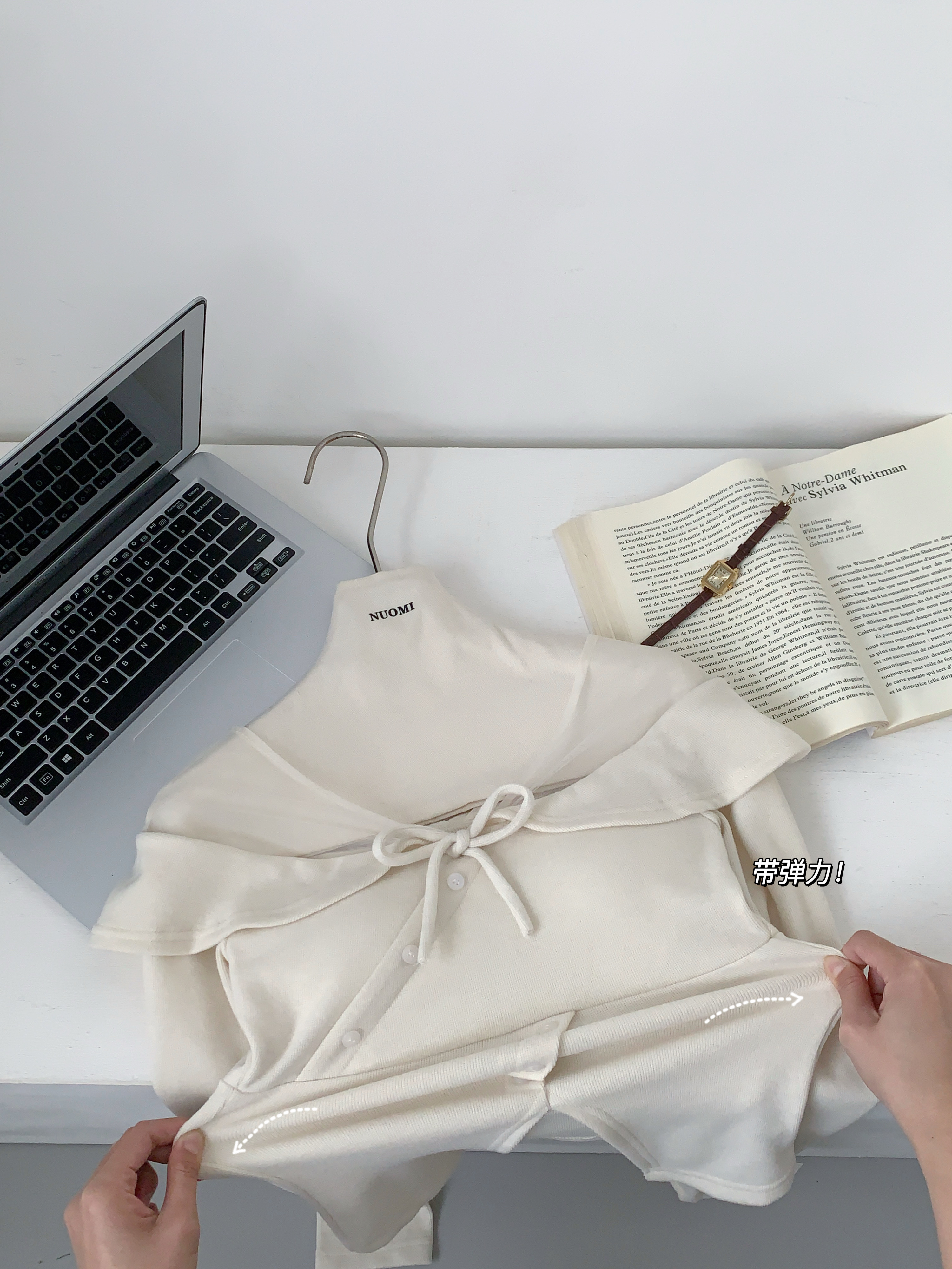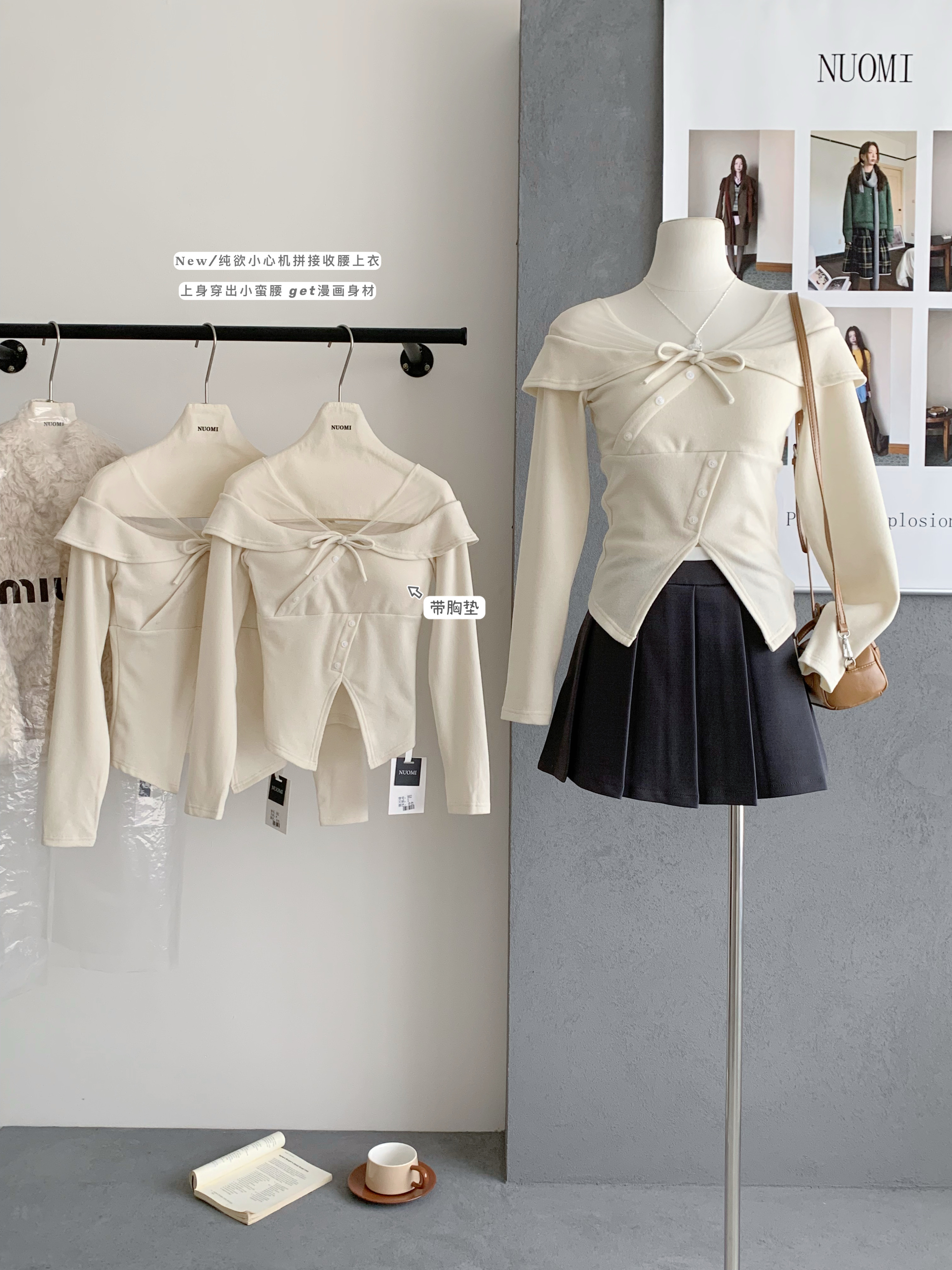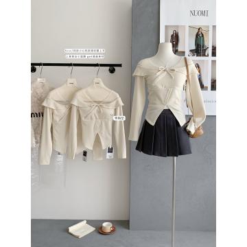 FA53258# 汪澜的妹妹少女心事小心机微透拼接一字肩收腰针织温柔上衣 服裝批發女裝批發服飾貨源